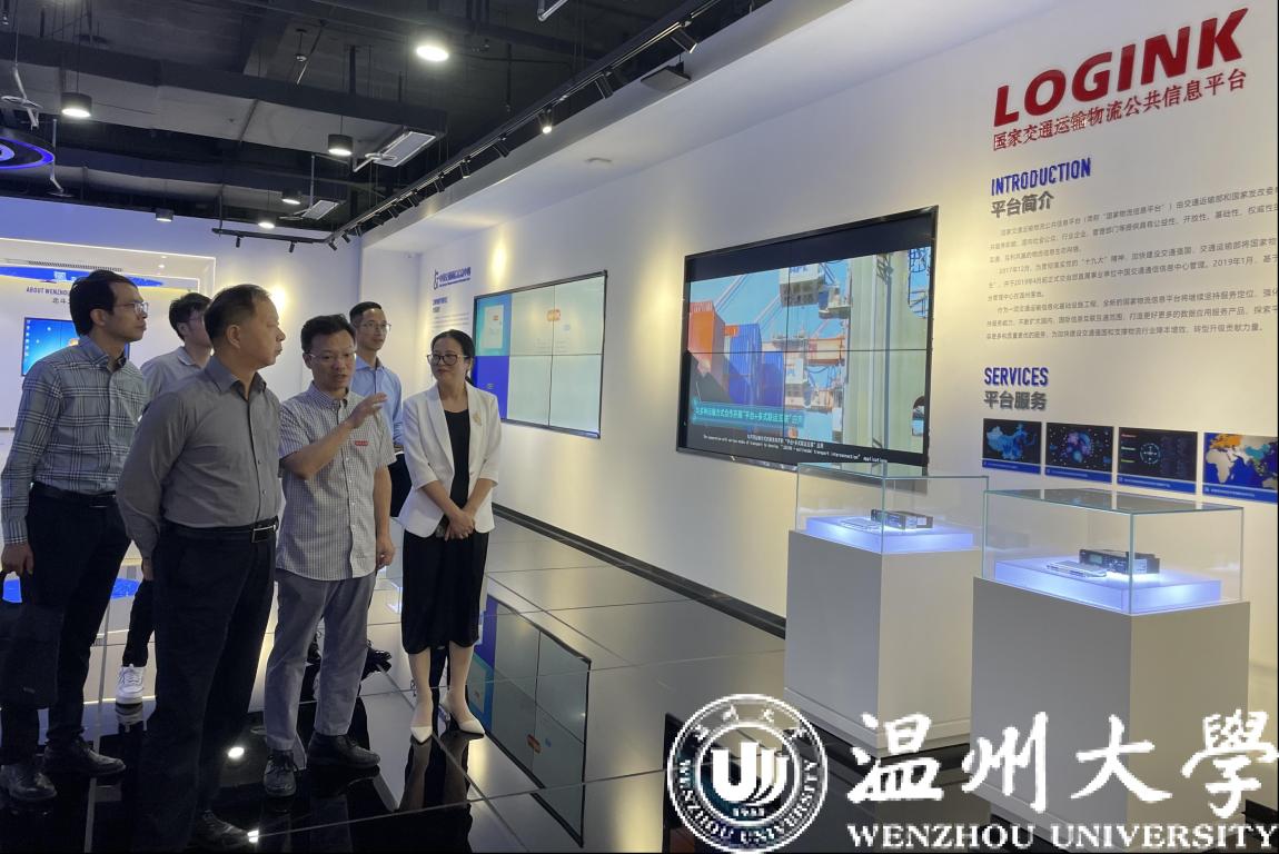 校党委副书记吴金法在艳母 大数据与信息技术研究院参观了信息展示馆,深入了解研究院平台建设情况和交通安全应急信息技术国家工程实验室温州分实验室的项目孵化、发展前景。