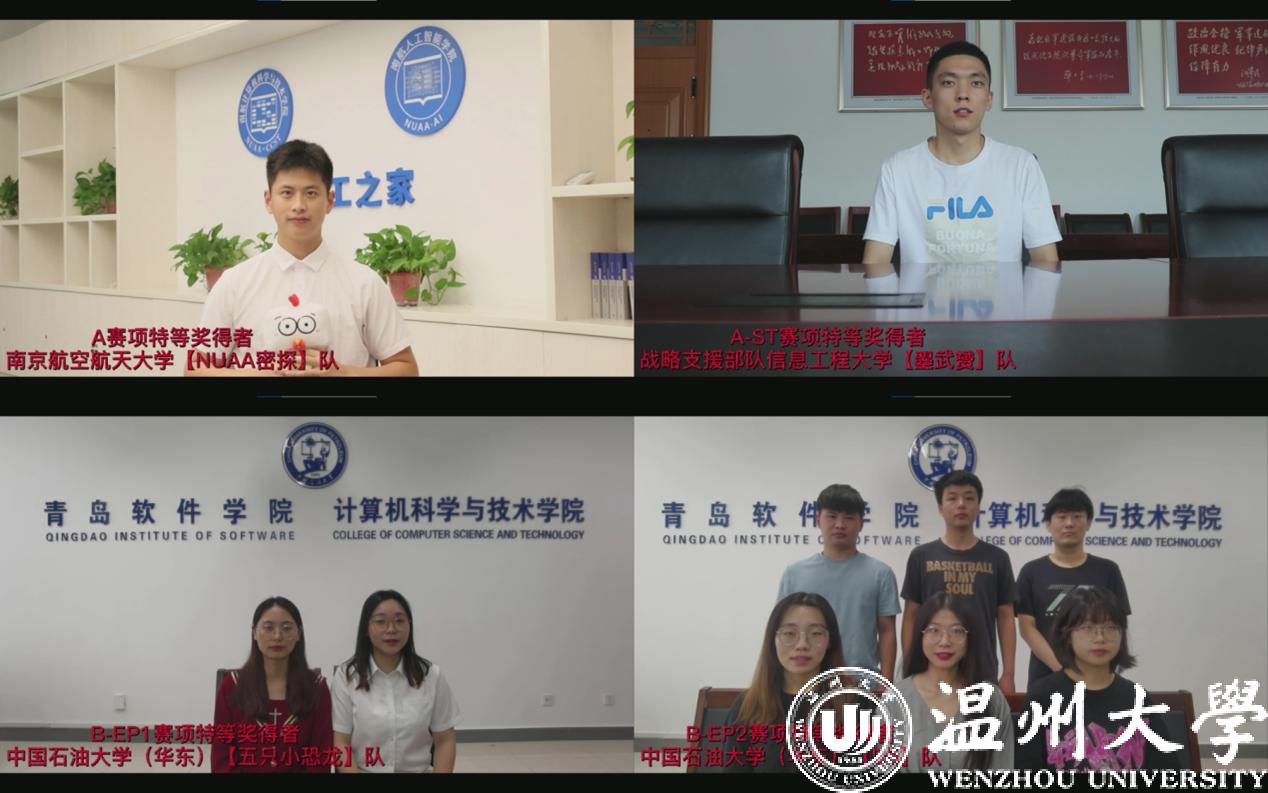 在颁奖环节,与会专家和嘉宾分别为获得A、A-ST、B-EP1和B-EP2赛项特、一、二、三等奖的队伍进行了线上宣读颁奖。各赛项的特等奖获得者通过视频分享了自己的参赛体会,表达了对赛事主承办方、评审专家和指导教师的感谢,分享了参赛过程中的成长与收获。