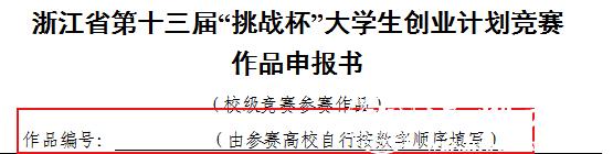 1.浙江省第十三届“挑战杯”大学生创业计划竞赛作品申报书(校级竞赛参赛作品)