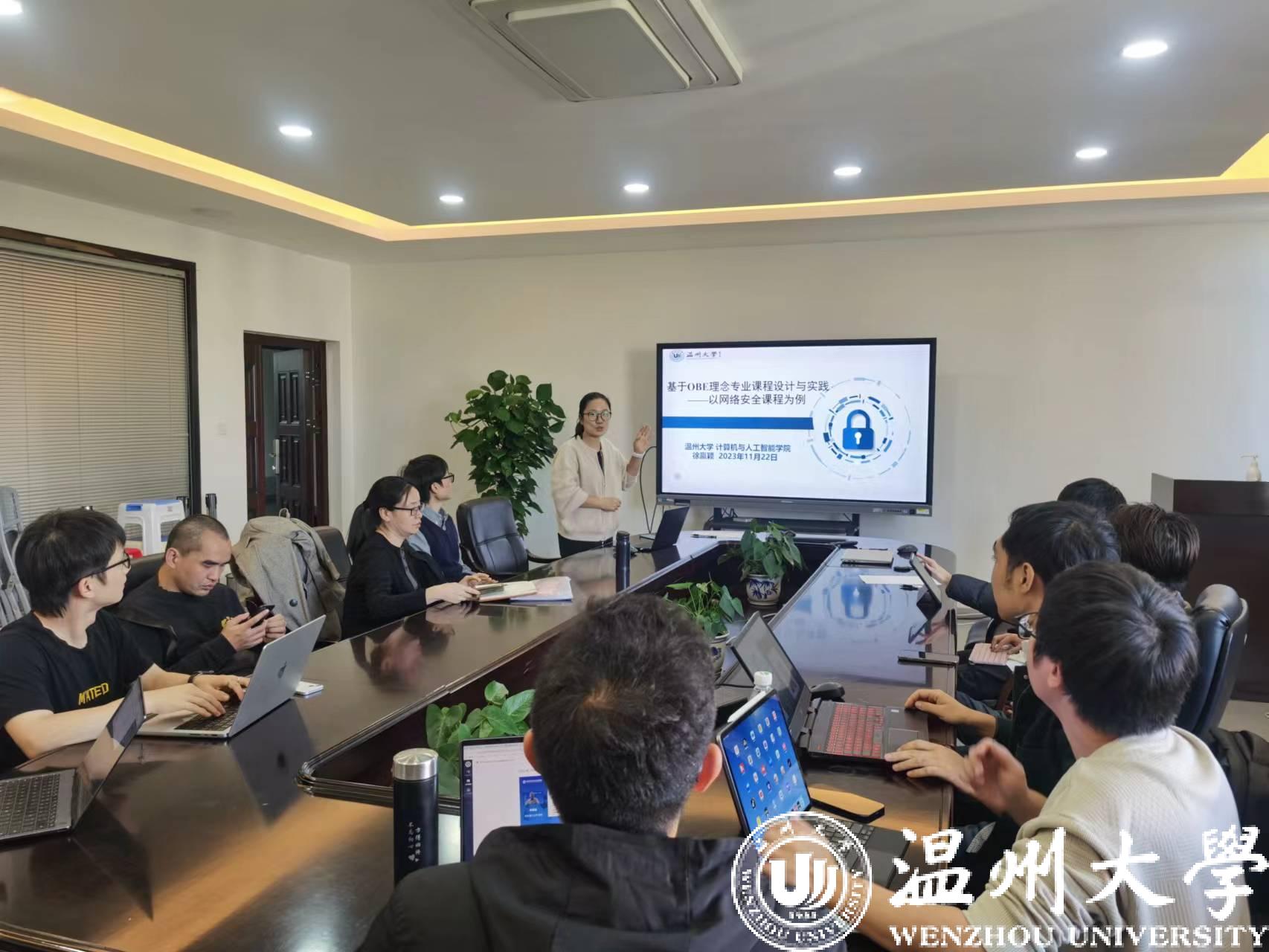 11月22日下午,计算机学院在5B318会议室开展教学沙龙活动,本次活动的主题是:基于OBE理念专业课程设计与实践。本次活动由2019年教师课堂教学竞赛一等奖、2020年步青教学卓越奖教学新秀徐嬴颖博士做专题报告,网络工程系主任金可仲主持,生环学院、计算机学院18位教师参加了本次教学沙龙活动。