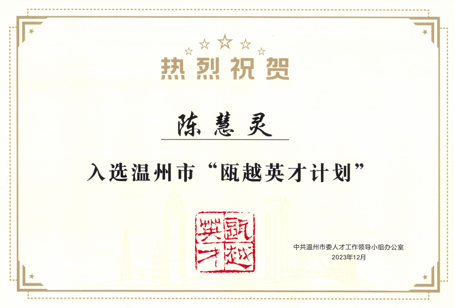 “瓯越英才计划”系统集成了六大人才工程:顶尖人才“瓯越鲲鹏计划”、海外人才“瓯越海智计划”、本土人才“瓯越特支计划”、工程师“瓯越引擎计划”、创业人才“瓯越领创计划”、创新团队“瓯越雁阵计划”。