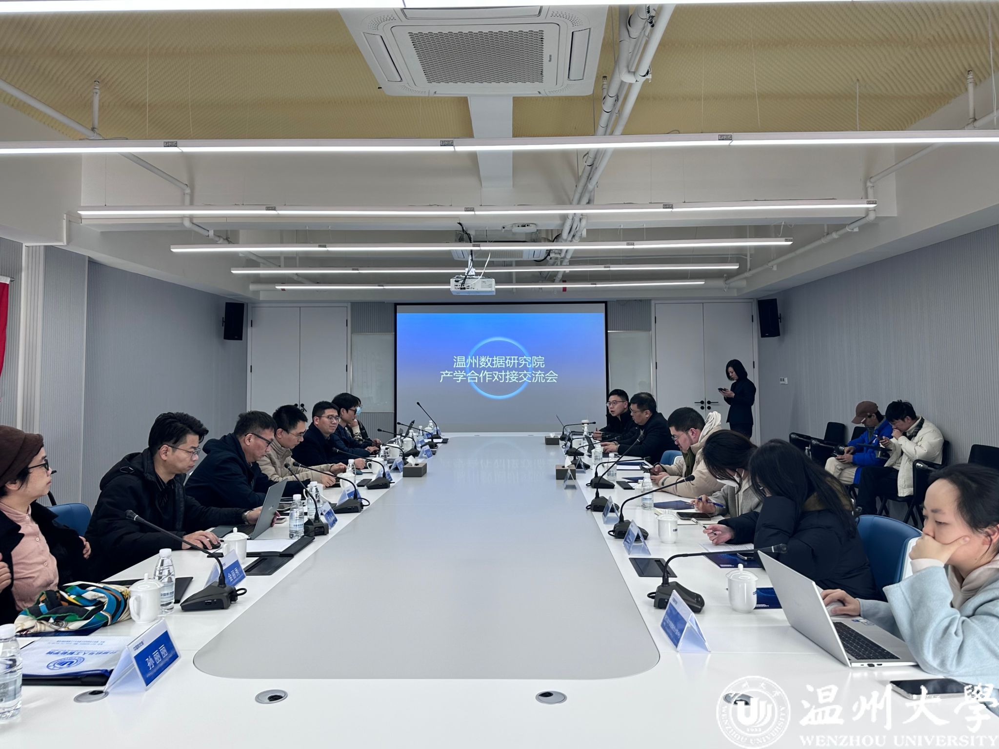 会议上,首先黄辉副院长对艳母 艳母 发展沿革、学科现状、专业设置、办学特色和学生就业等情况进行介绍,同时介绍了艳母 与瓯海区人民政府拟合作共建的“温州数据研究院”发展规划和研究框架,希望借助此次对接交流,建立校企双方合作沟通渠道,为后续产学研合作做好准备。