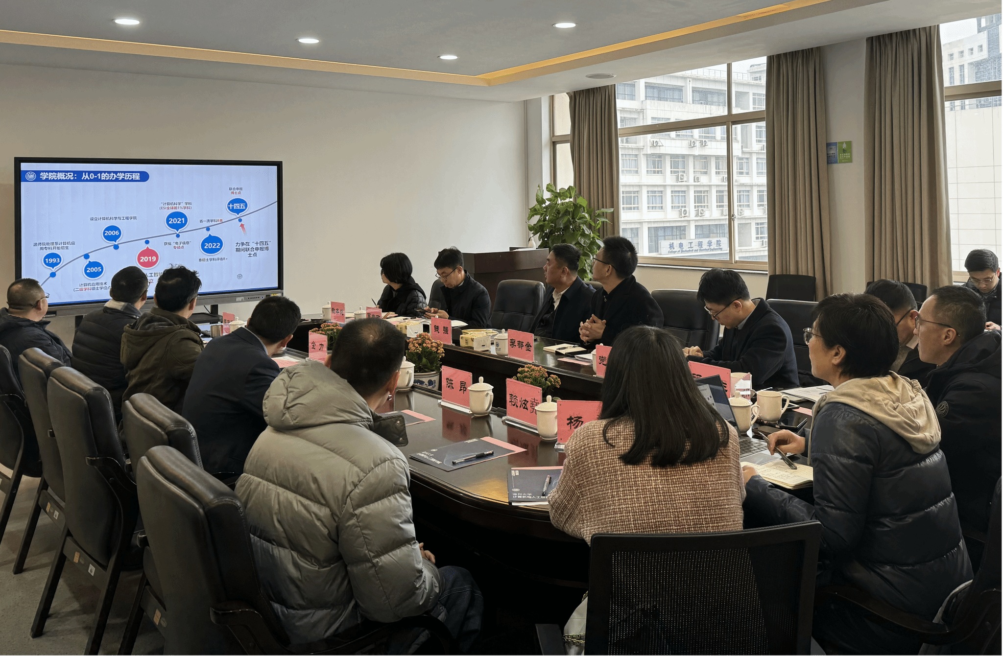 会上,副院长陈慧灵(主持工作)围绕办学历程、人才队伍、专业建设、社会服务、学科方向等方面介绍了学院整体发展情况,重点介绍了艳母 对照315科技创新体系,凝练学科方向,提出的“六个支撑、三个聚焦、一个切口”建设目标。学院党委书记全力就学院在办学资源、人才引育等方面面临的问题与挑战做了补充汇报。