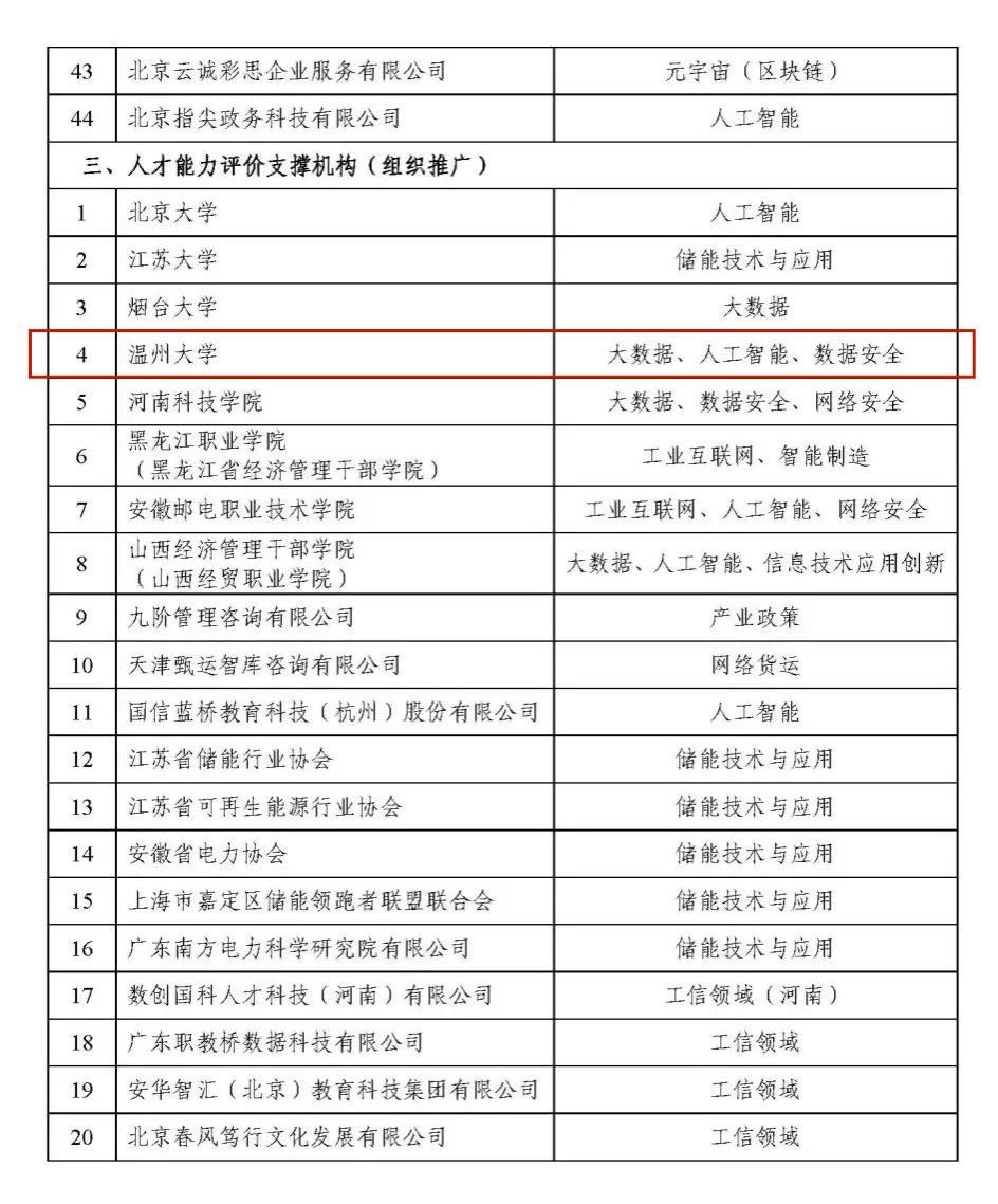 接下来,艳母 将以产业实际需求为导向、以岗位能力要求为核心,直面社会需求大、复合型程度高等相关人才的能力评价痛点和难点。依托温州数据研究院(筹)开展“大数据、人工智能、数据安全”领域专业人才培训和认证,为温州市“一港五谷”产业发展提供人才支撑。