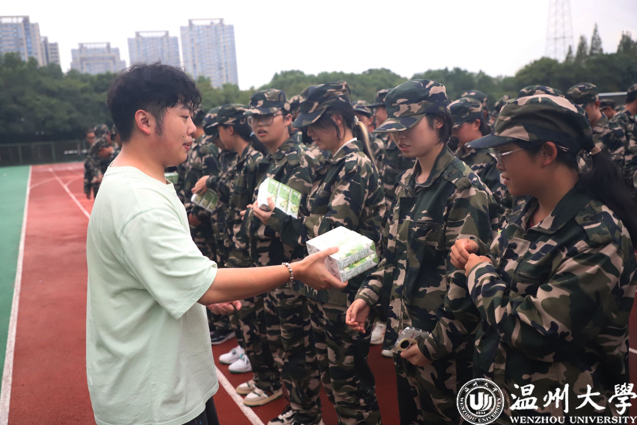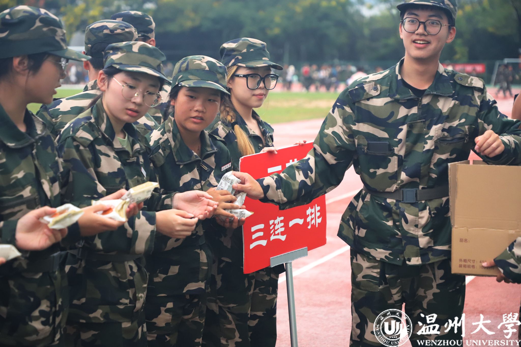 随后,彭小媚副书记和辅导员们给教官和新生们发放了精心准备“中秋礼物”,既有中秋佳节的美好意蕴“月饼”,又有精心挑选的“营养果汁”。