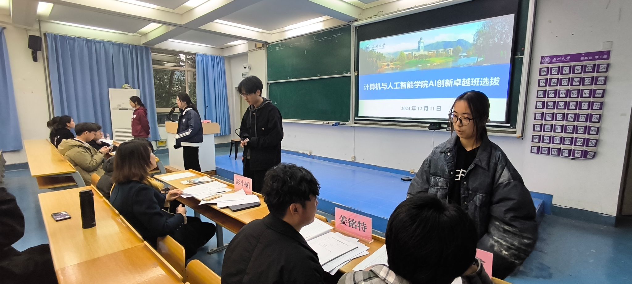 动员会结束,学院开展了AI创新卓越班面试选拔,各位同学分别介绍了自己至今为止获得的荣誉奖项和自身特长,最终有39位同学脱颖而出,成功AI创新卓越班的首批成员。