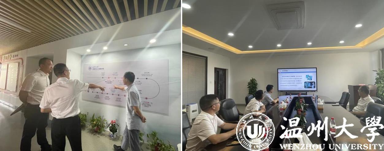 首先,学院副院长陈慧灵、黄辉,数字经济研究院副院长谷雨陪同廖处长参观学院地方服务平台—温州市数字经济研究院,同时,对“浙江省安全应急智能信息技术重点实验室”做了重点介绍。
