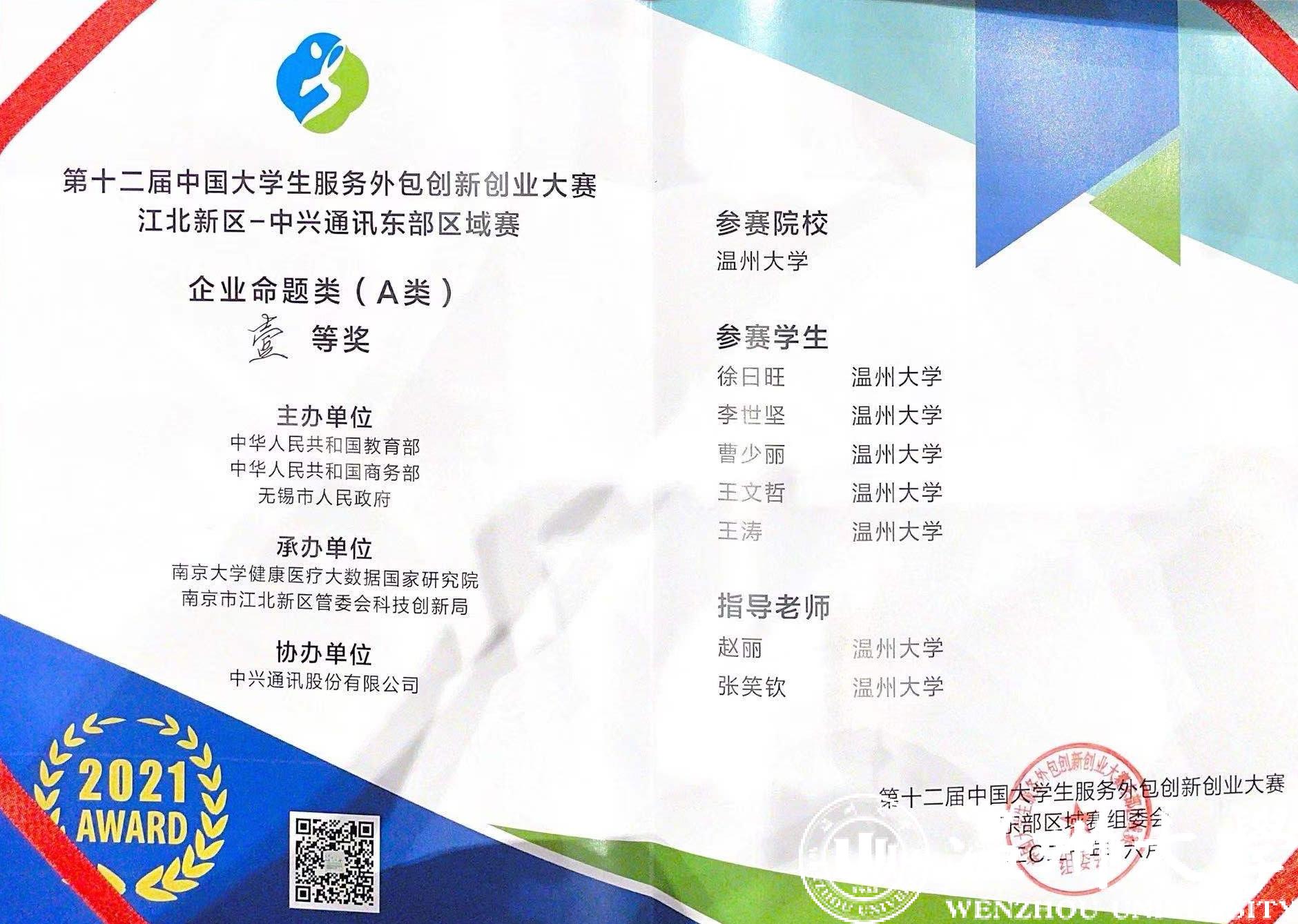 6月4日,第十二届中国大学生服务外包创新创业大赛东部区域赛决赛在南京落下帷幕,艳母 学子喜获一等奖,这也是温大历史上首次获得区域决赛一等奖。