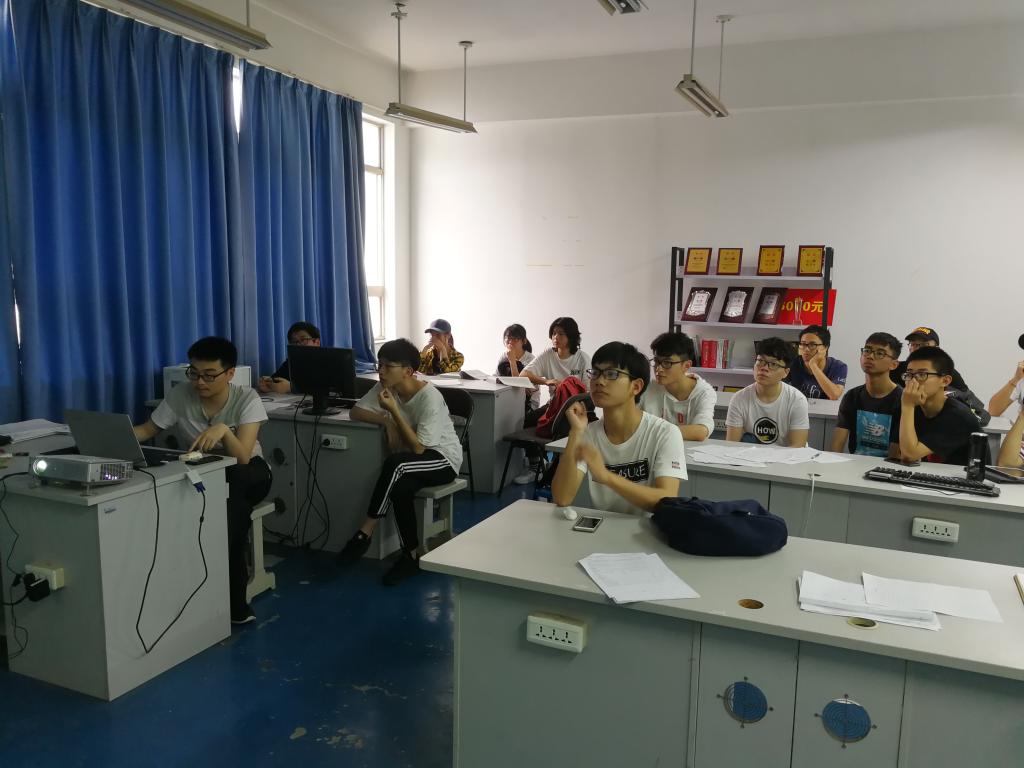 (集训队平时训练场景,孙铤超(左列前一)在讲题,右列二排左3陈殷康)