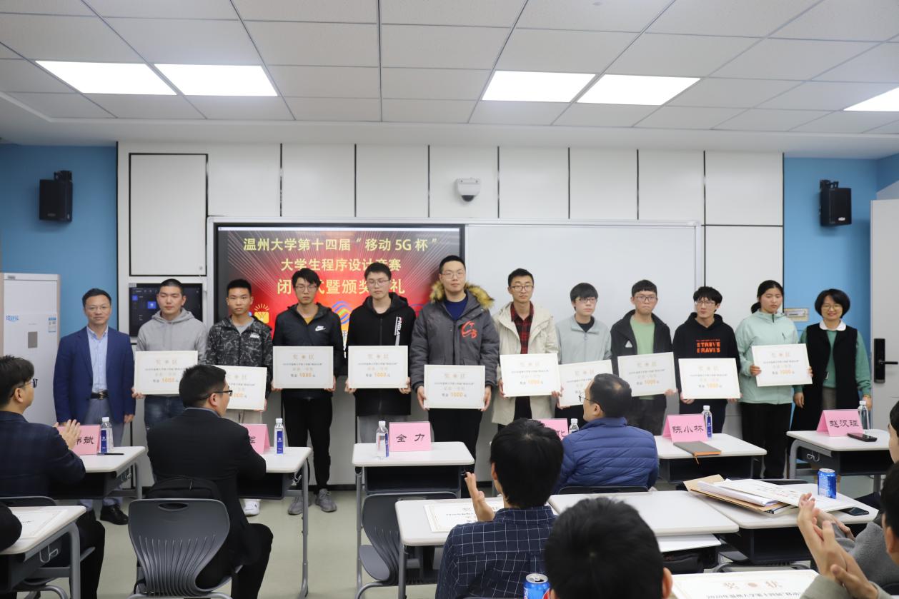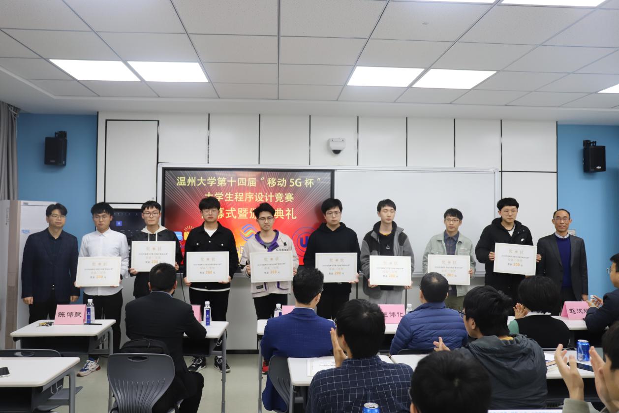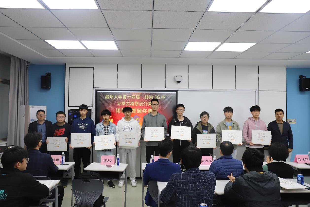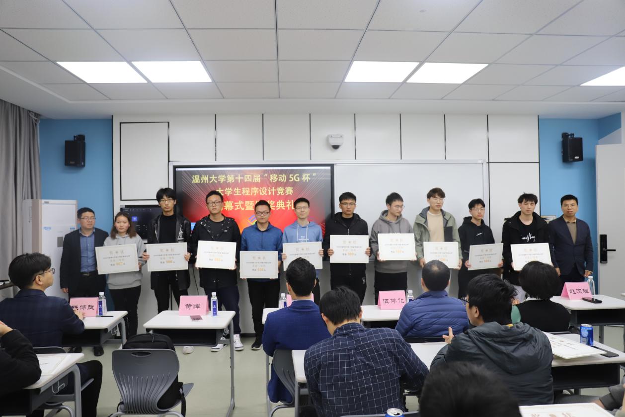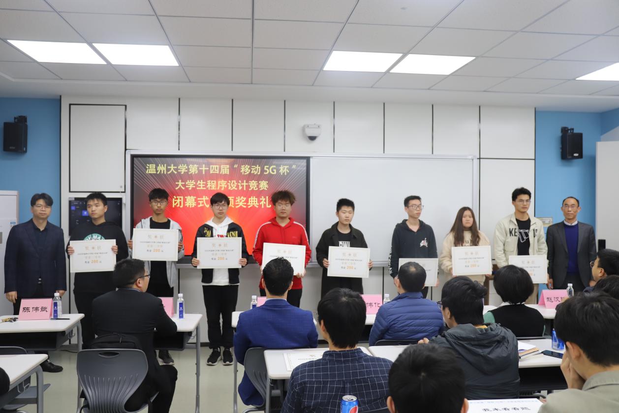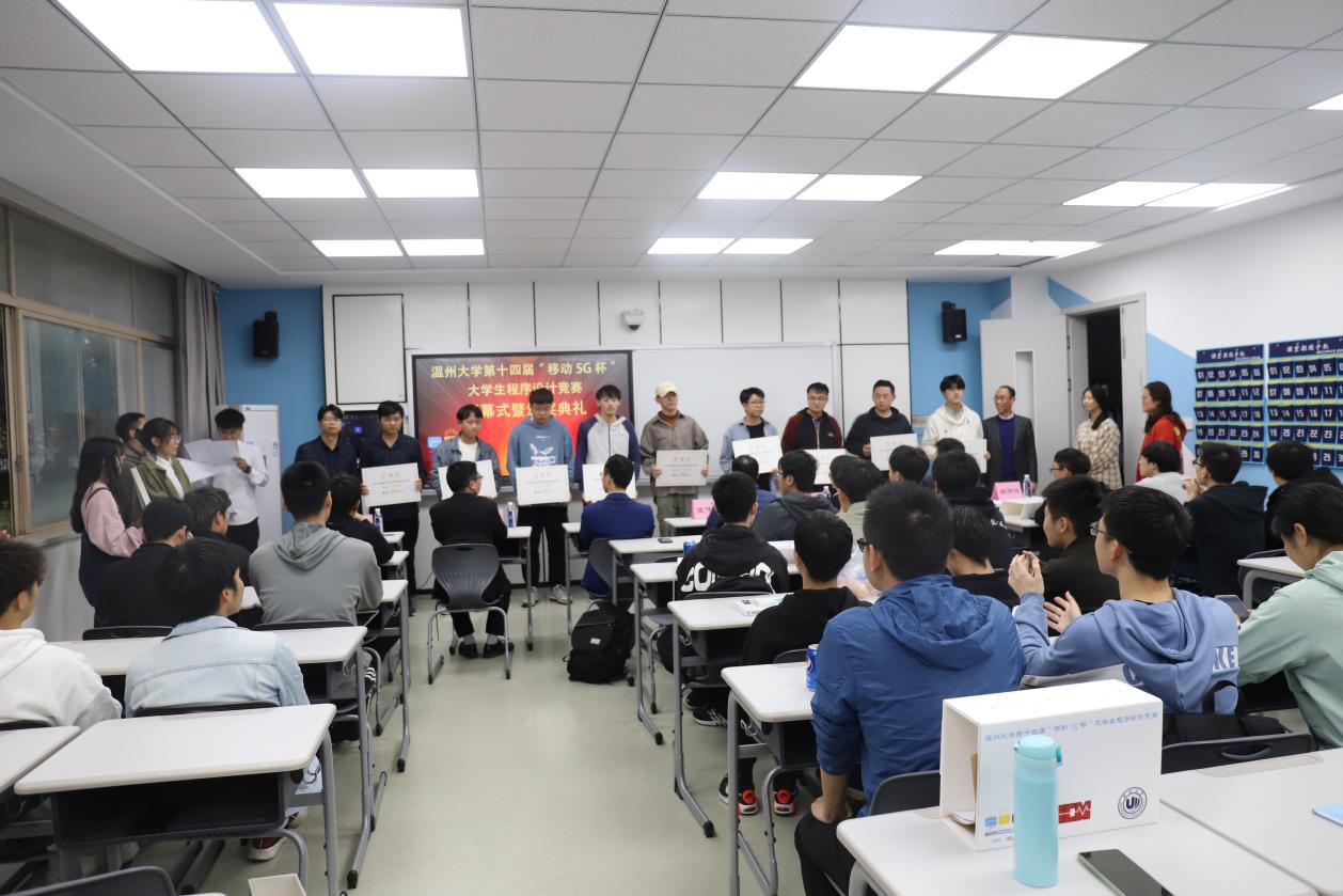 在激烈的比赛结束后,在5A103智慧教室举行了闭幕式暨颁奖典礼。温州移动政企部副总经理伍伟化、艳母 教务处副处长陈小林、计算机学院党委书记全力、计算机学院副院长黄辉、计算机科学与技术专业负责人赵汉理、计算机科学与技术专业系主任陈伟斌、竞赛负责人胡明晓,以及各个获奖队伍代表参加了此次仪式。典礼伊始,学院党委书记全力代表致辞,他介绍了此次活动的目的以及作用,提到了本次竞赛是许多优秀校友迈向IT高级行业的第一步,激励同学们认真训练,在ACM国际大学生程序设计大赛中取得好成绩。