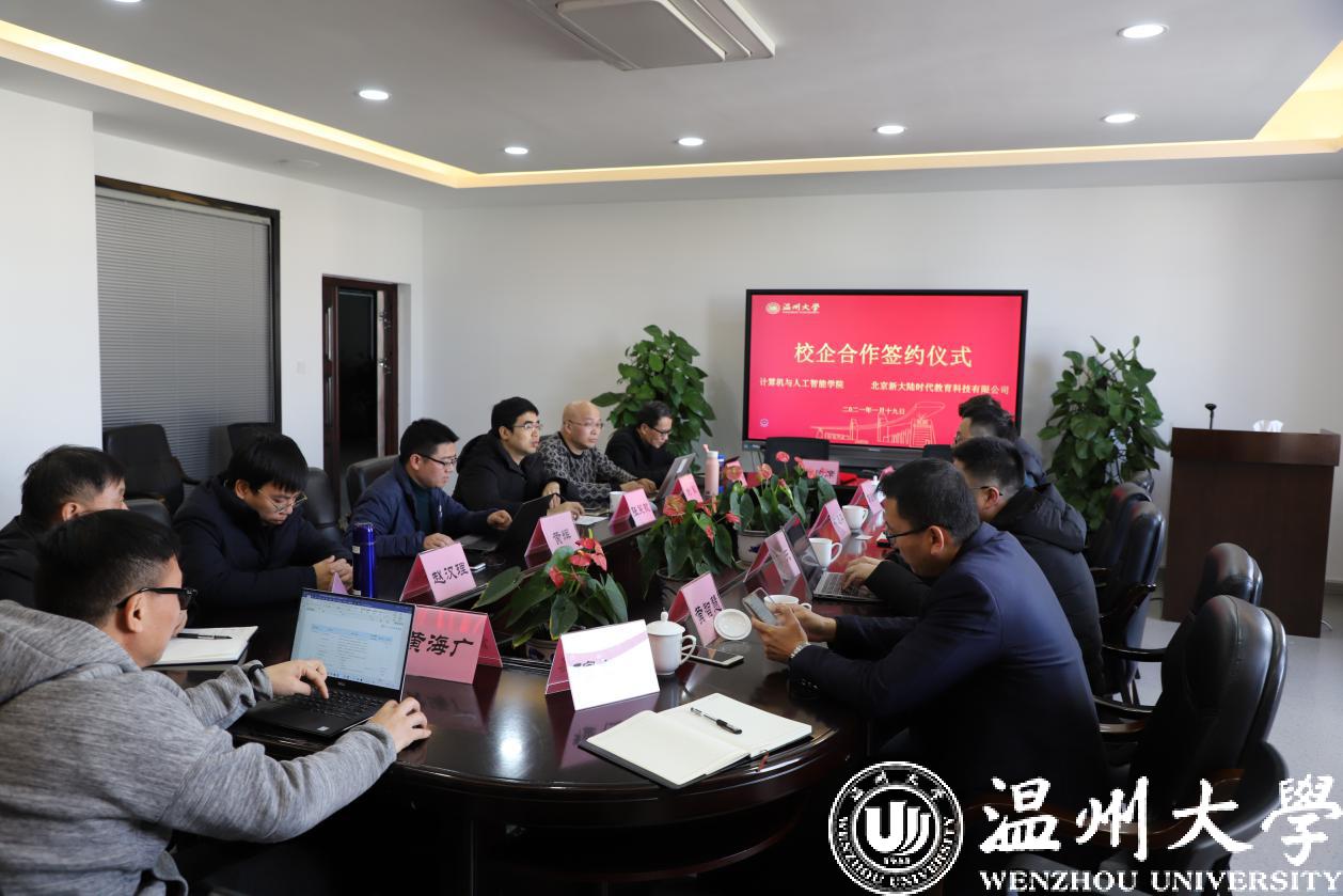 1月19日下午,艳母 与北京新大陆公司在5B318会议室举行校企合作签约仪式。院长张笑钦、副院长黄辉、系主任及专业负责人和北京新大陆时代教育科技有限公司战略开发部总监林道华等出席会议。本次会议由黄辉副院长主持。