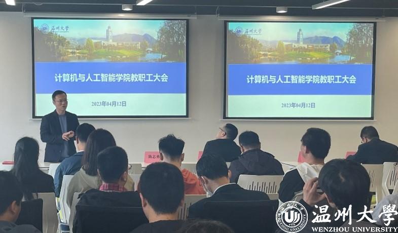 2023年4月12日下午,学院在数字经济研究院多功能房间召开教职工大会,会议由学院党委书记全力主持,全体教职工参加会议。
