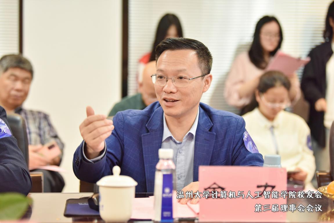 教师代表黄长城动情地回忆了学院的成长历程,一路走来,学院取得的成绩离不开领导班子的带领和教师团队的拼搏,更离不开广大校友的支持与帮助。当前,人工智能、大数据等前沿领域技术已成为推动社会进步和经济发展的“新引擎”,他作为学院的建设者和见证者,将不忘立德树人初心,继续深化计算机与人工智能教育与研究,培养更多优秀的专业人才。