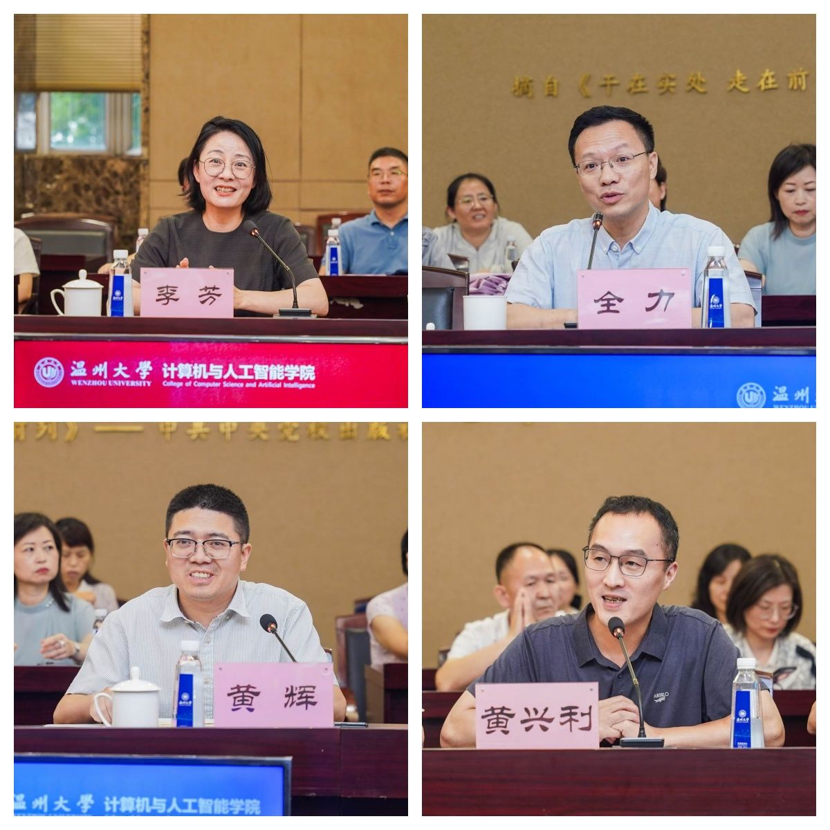 会上,艳母 党委书记全力系统地介绍了学院在学科建设、师资队伍、科研平台及服务地方等方面的发展成果。学院依托多个研究院,在智能制造、智慧治理、智慧民生等领域持续发力,有力助推科教智城建设,紧跟人工智能技术演进趋势。全力书记还表示,期待以此次调研为契机,与温州市教师教育院在智能教育课程体系构建、教师数字素养提升、产学研协同创新等方面深化合作,携手共谋发展。学院培训中心主任黄兴利就教师培训工作进行详细汇报,分享了培训中心的核心业务、近年来显著的培训成效以及创新实践。中心始终秉持“AI 赋能教育,服务地方发展”的宗旨,不断优化培训质量,积极拓展与地方政府、企业、中小学的合作,致力于为教师专业成长和地方教育事业发展贡献更大力量。