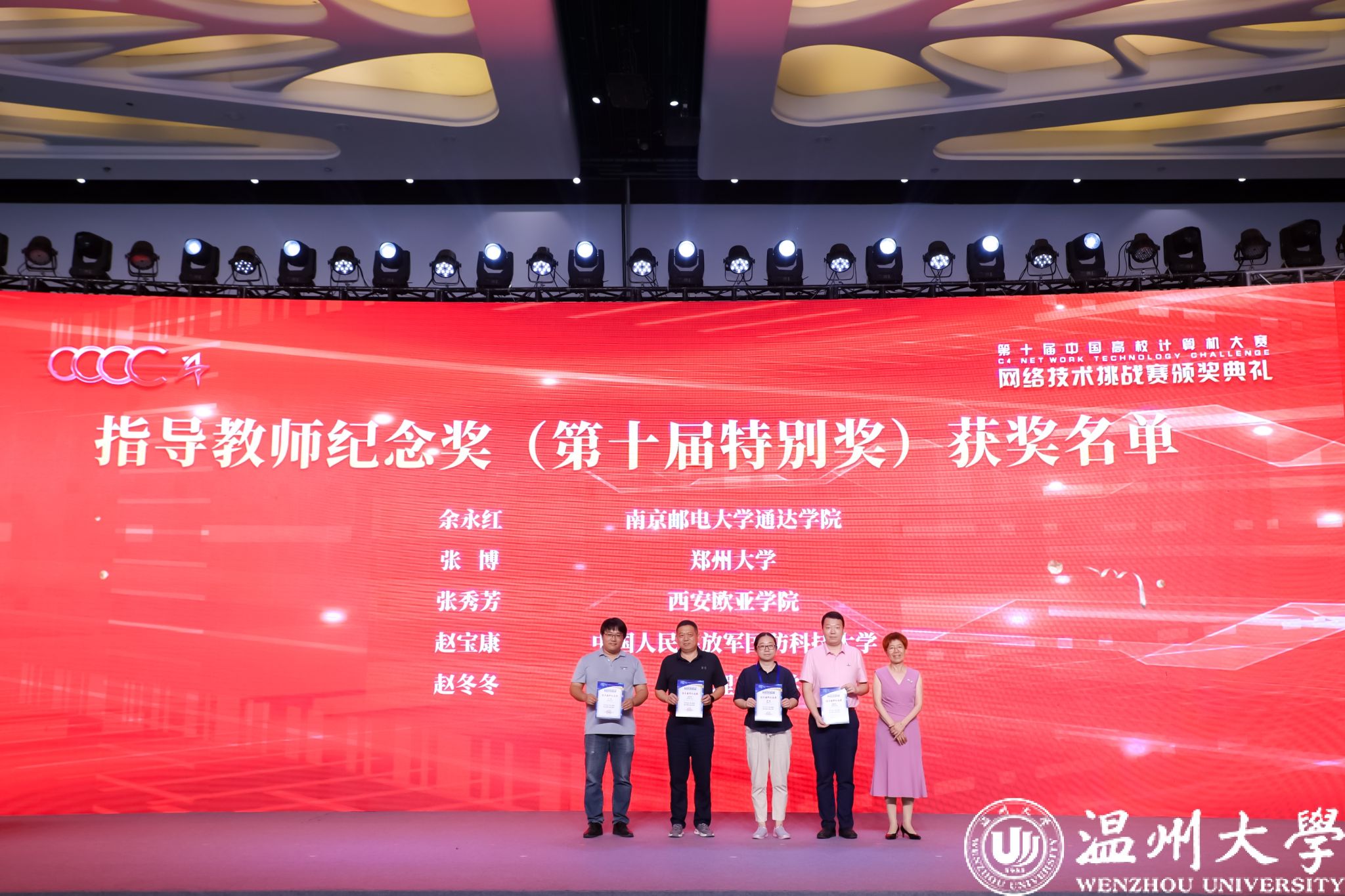 巅峰对决之后,荣耀时刻如约而至。8月31日中午,隆重的颁奖典礼在温州铂尔曼酒店环球厅拉开帷幕。中国高校计算机大赛组委会主任蒋宗礼教授、艳母 副校长王尧骏教授等来自主办方、承办方、地方政府、合作企业的领导与嘉宾莅临现场,共同见证了一批网络技术英才的诞生,并为获奖师生颁发了荣誉奖项。