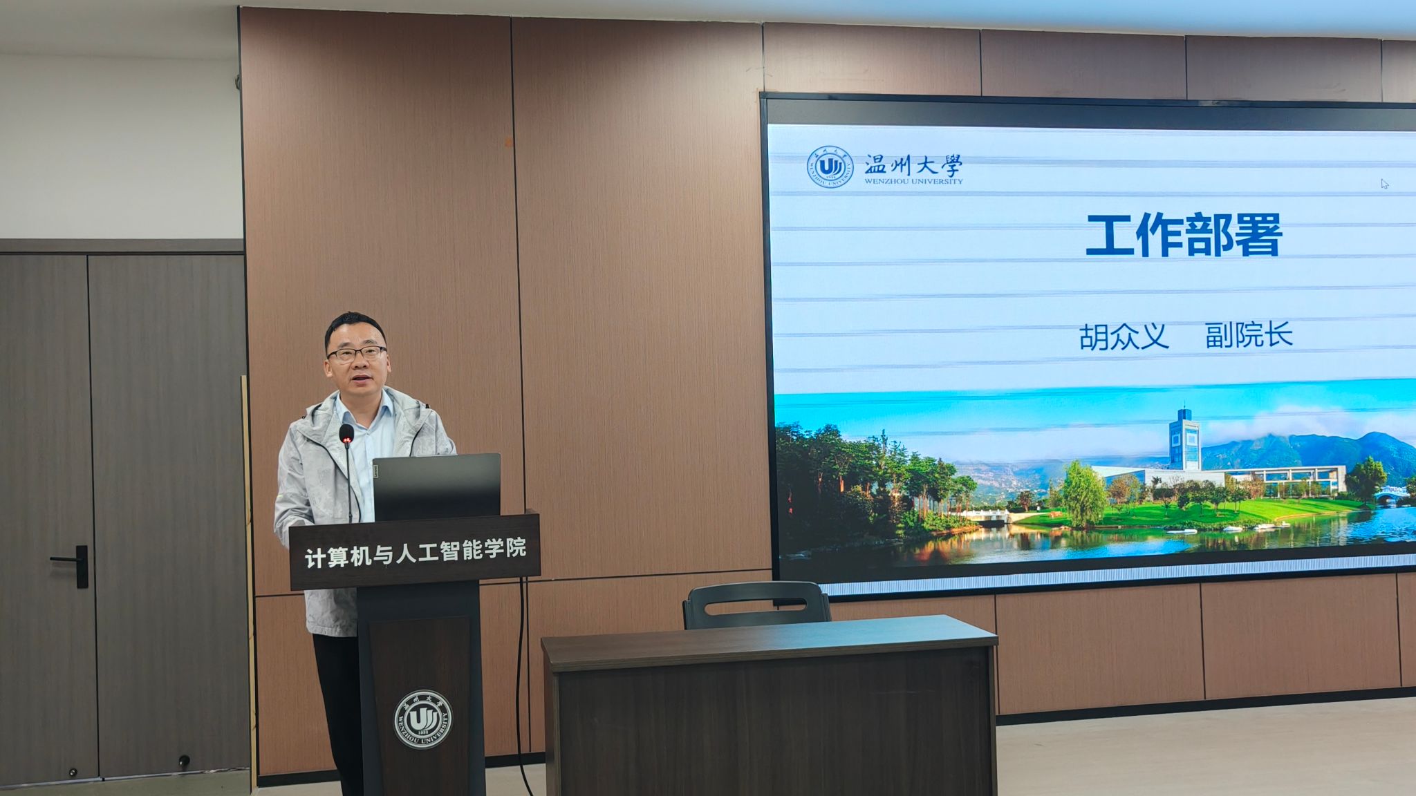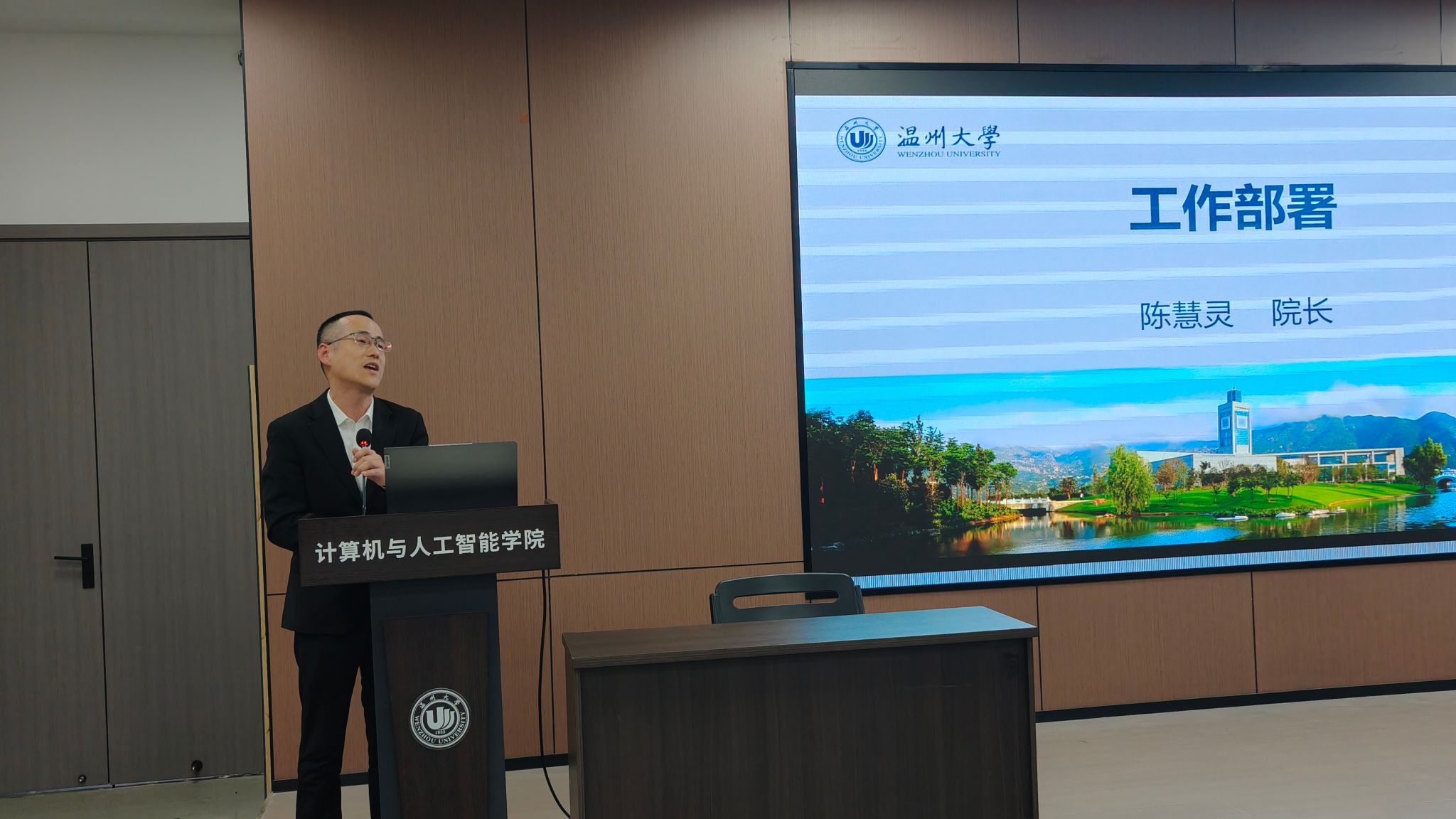在学院工作部署环节,院长陈慧灵就人才引进和学科发展提出要求。他强调,要加大高层次人才引进力度,积极赋能“人工智能+”发展,鼓励教师主动融入人工智能技术浪潮,推动学科交叉与创新。