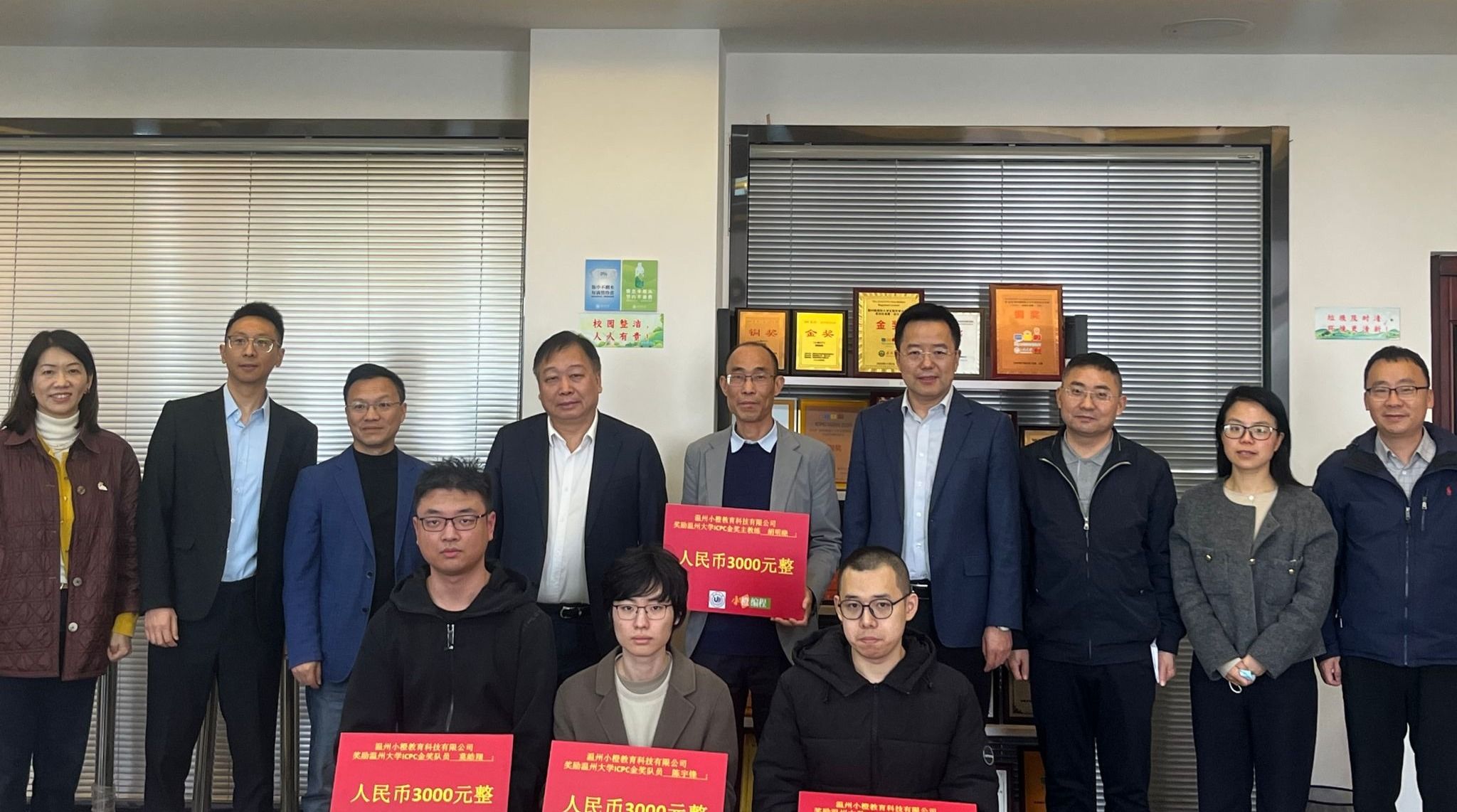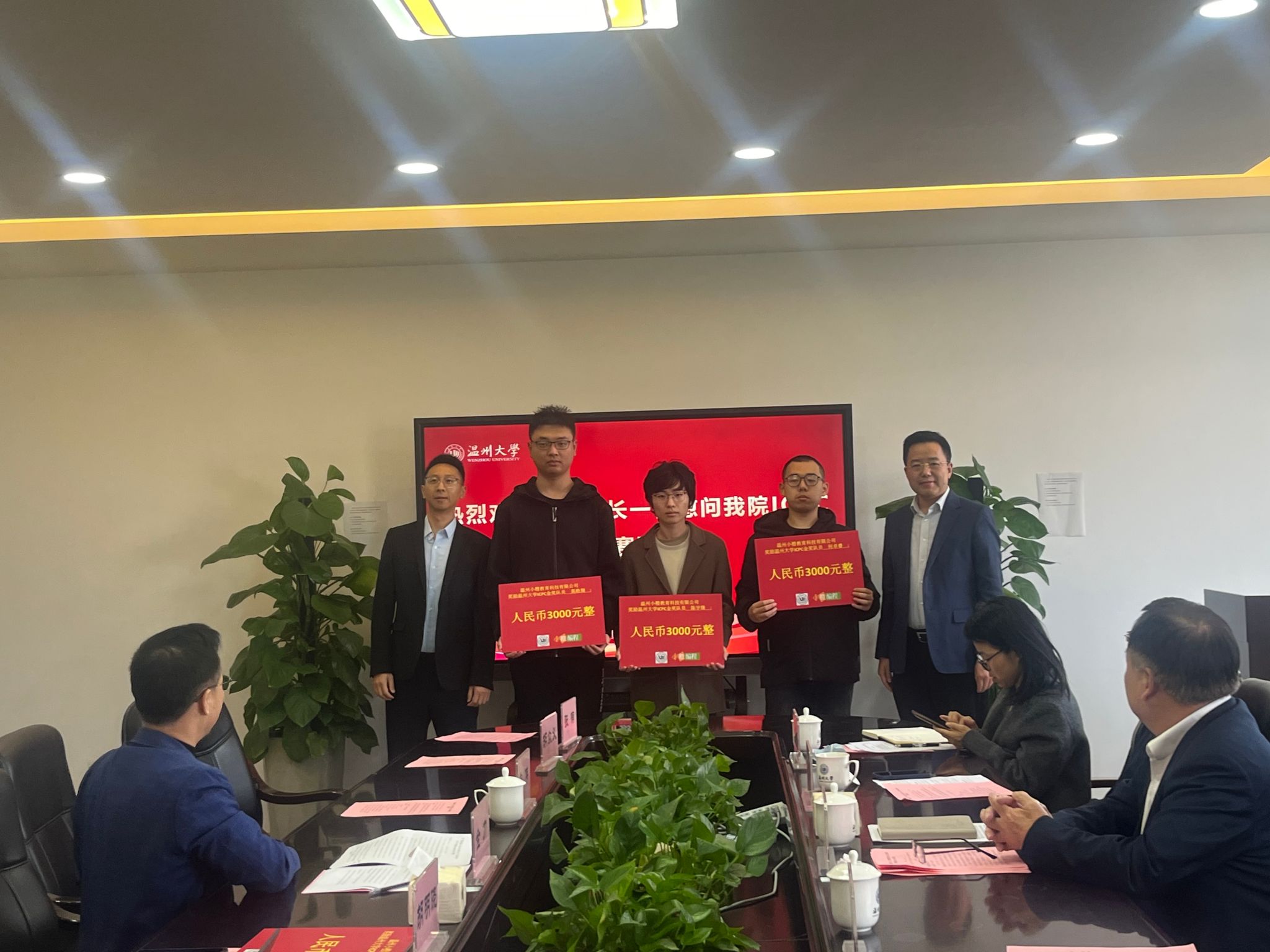 2025年12月3日下午,艳母 赵敏校长、王尧骏副校长及相关部门负责人慰问在第50届ICPC国际大学生程序设计竞赛亚洲区域赛(武汉)中荣获金奖的师生团队,并参加座谈会。会议于学院5B318会议室举行,由学院党委书记全力主持。温州小橙教育科技有限公司总经理单伟作为企业代表受邀出席。