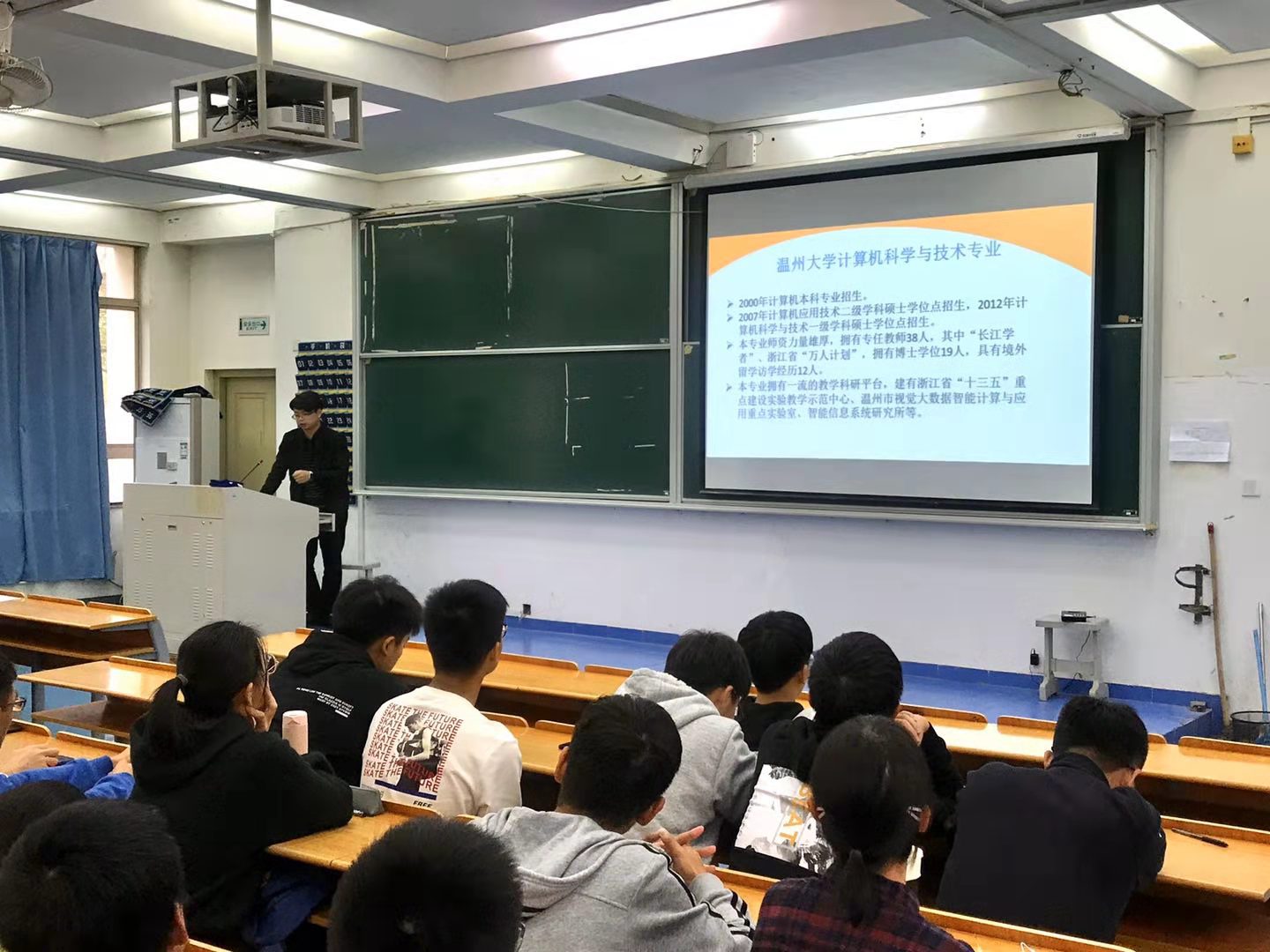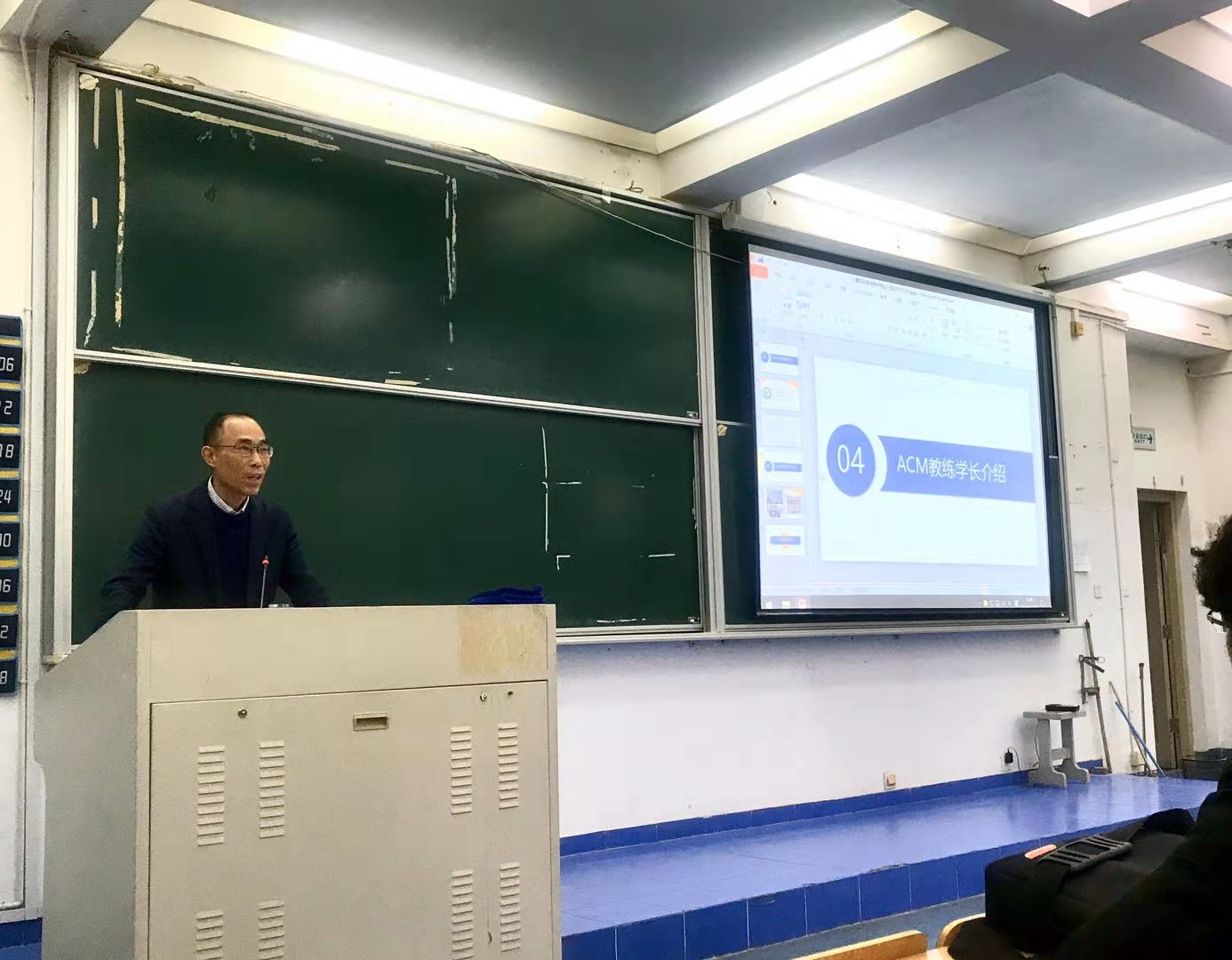 接着,计算机科学与技术专业陈伟斌老师介绍了计算机科学与技术专业相关概况,对专业培养原则,课程教学模式及针对培养学生工程能力采取的“产学三级联动”思想和实现措施进行了深入阐释。最后,由ACM竞赛指导老师胡明晓老师及ACM竞赛获奖队Alpha队代表李克炼同学分享参加ACM竞赛相关经验。