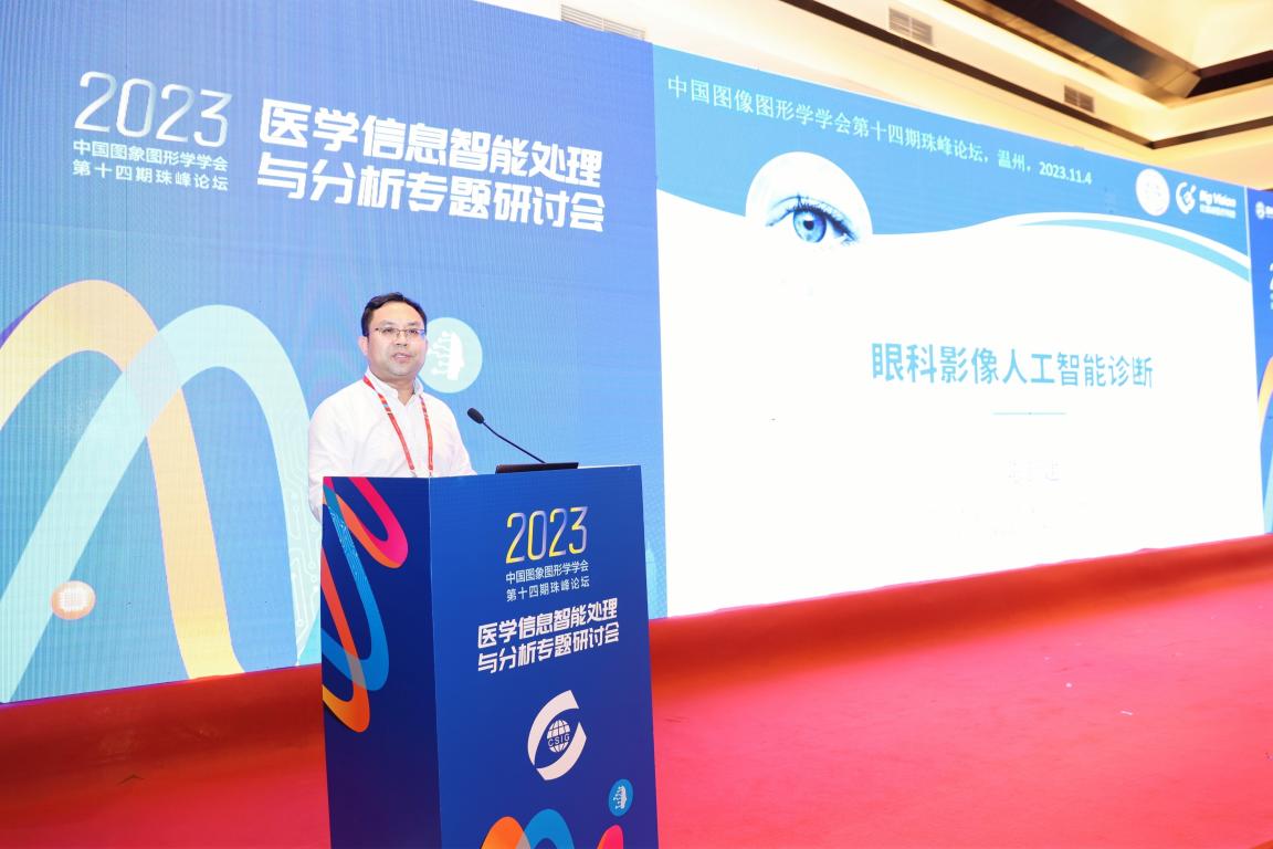 陈新建教授作了题为“眼科医学影像人工智能诊断”的报告,报告主要介绍了眼底影像的处理与分析方法,各类不同眼科疾病的影像疾病诊断与量化分析,以及基于OCT影像的眼科疾病筛查技术等,为眼科疾病的诊断和治疗提供了重要技术支持和指导。