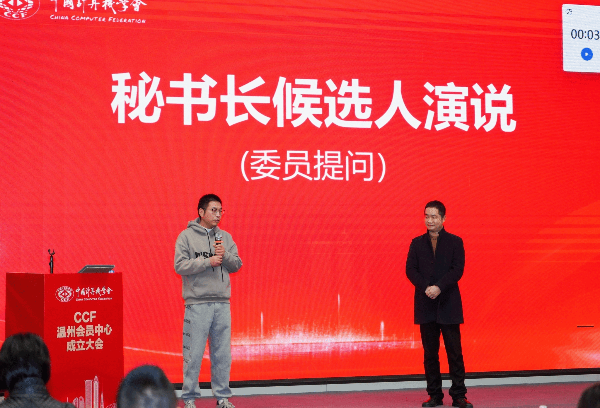 CCF杭州副主席朱霖潮、CCF宁波主席鲍淑娣、CCF金华副主席江晓林等会员活动中心代表上台发表致辞,他们表示非常荣幸能够参加CCF温州的成立大会,与大家共同见证这个重要时刻。