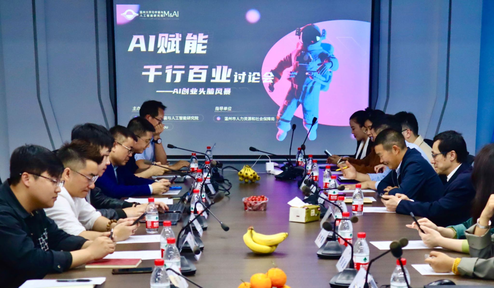 就在本月,一场以“AI赋能千行百业”为主题的讨论会在温大元宇宙与人工智能研究院举行。与会嘉宾结合自身实践经验和行业特点,围绕AI技术的发展趋势、创新应用场景、产业生态构建等多个方面进行交流和探讨。不难想象,随着AI技术的进步和应用场景的不断拓展,AI赋能创新创业的可能性将更加广阔,温州乘“数”而上,全力开启高质量发展新引擎的蓝图正徐徐展开。
