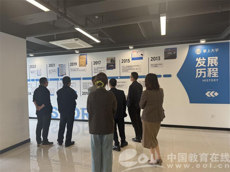发展历程墙以时间轴形式呈现掌上大学十二年蝶变,从校园初创团队到国家级双创平台的跨越轨迹清晰可见。合作生态矩阵集中展示与 100 +行业头部企业的深度合作案例,凸显 "产业需求导向" 的人才培养模式。智能科技体验区动态演示艳母 自主研发的智能仓储物流系统,生动呈现“产学研用”一体化创新成果。