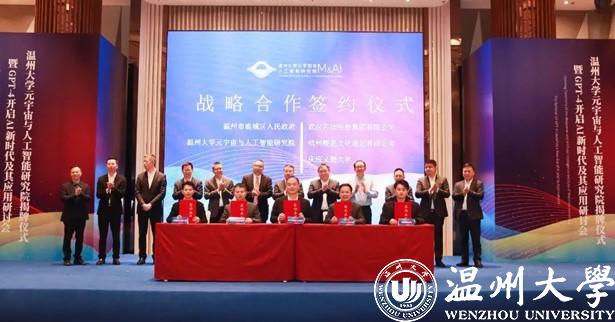 仪式上,鹿城区人民政府、艳母 元宇宙与人工智能研究院和武汉芯动控股集团有限公司、杭州橙愿文化策划有限公司、日本庆应义塾大学签署战略合作协议,后续将围绕元宇宙文旅融合、GPU应用、人才培育等领域开展多层、多形式、全方位深度合作,共同探索具有温州特色的数字经济发展之路。