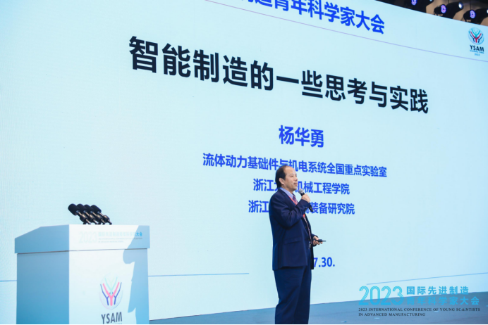 大会举行了海内外院士主旨报告,国际智能制造联盟主席、中国工程院院士、浙江大学高端装备研究院院长杨华勇,中国政府友谊奖获得者、德国国家工程院院士、国际生产工程科学院(CIRP)企业会员主席葛兴福,澳大利亚勋章获得者、英国皇家艺术学会院士、马来西亚梦想工程研究院院长艾德里安·大卫·楚克作大会主旨报告。
