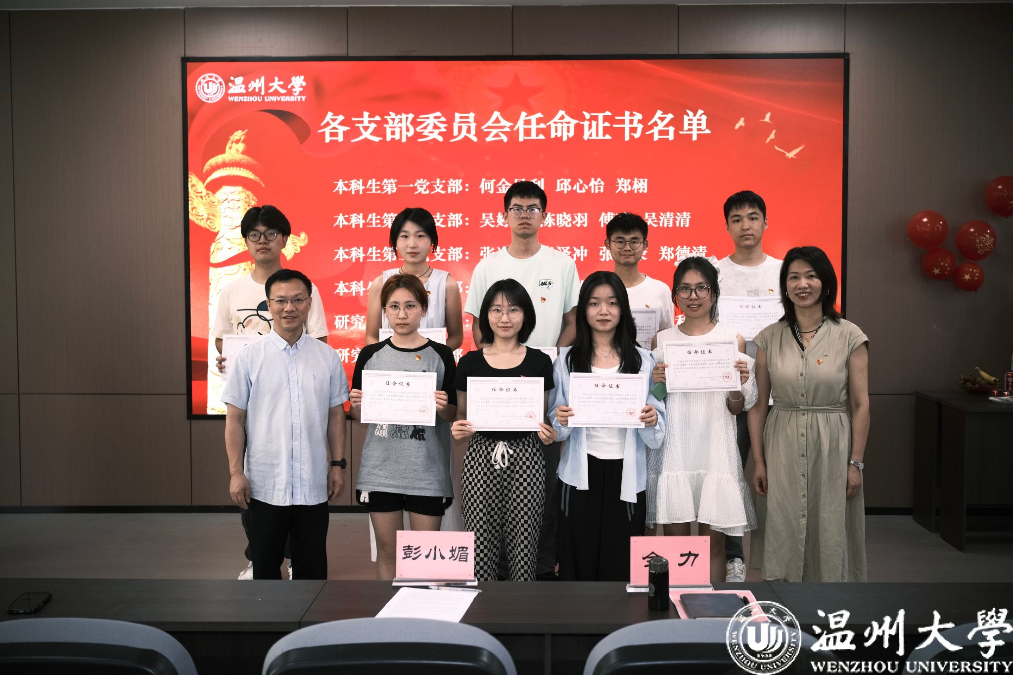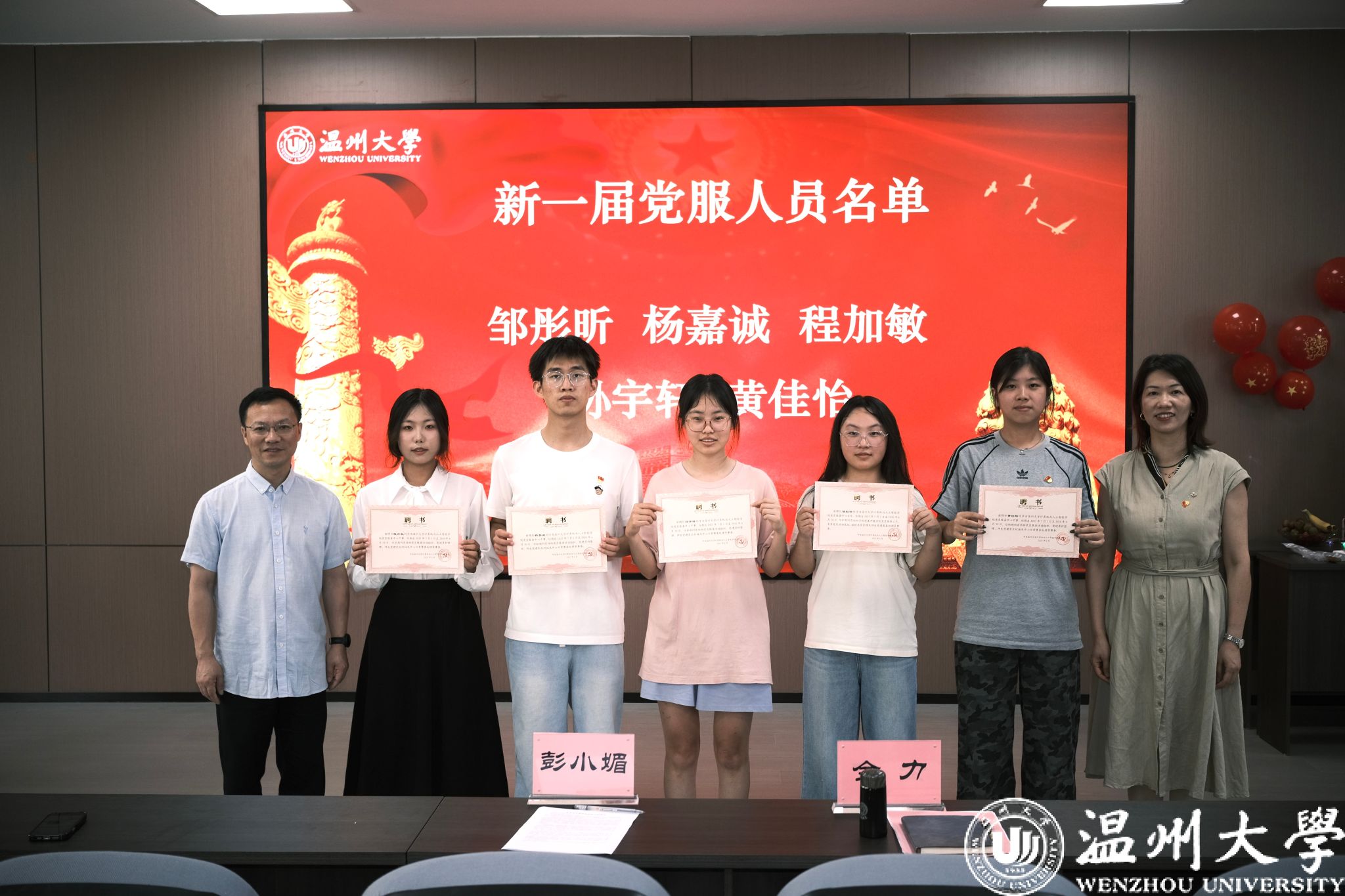 此次仪式,学院党委精心策划了一系列饱含深意的环节。为毕业生党员颁发政治生日贺卡,这方寸之间承载着党组织深切的关怀与殷切的期望,时刻提醒着他们无论身处何方,都要永葆党员本色,牢记入党初心。学院党委为过去一年在志愿服务中发挥先锋模范作用的大三党服工作人员颁发 “党服荣誉证书”,以表彰他们用实际行动践行党员责任与担当的优异表现。随后,新一届党服团队上任仪式同步举行,党委书记全力为新一届党服人员授予聘书,并颁发各支部委员会任命证书,这既是对新成员的充分信任,更是激励他们传承红色基因,在新的岗位上续写为党奉献的新篇章。