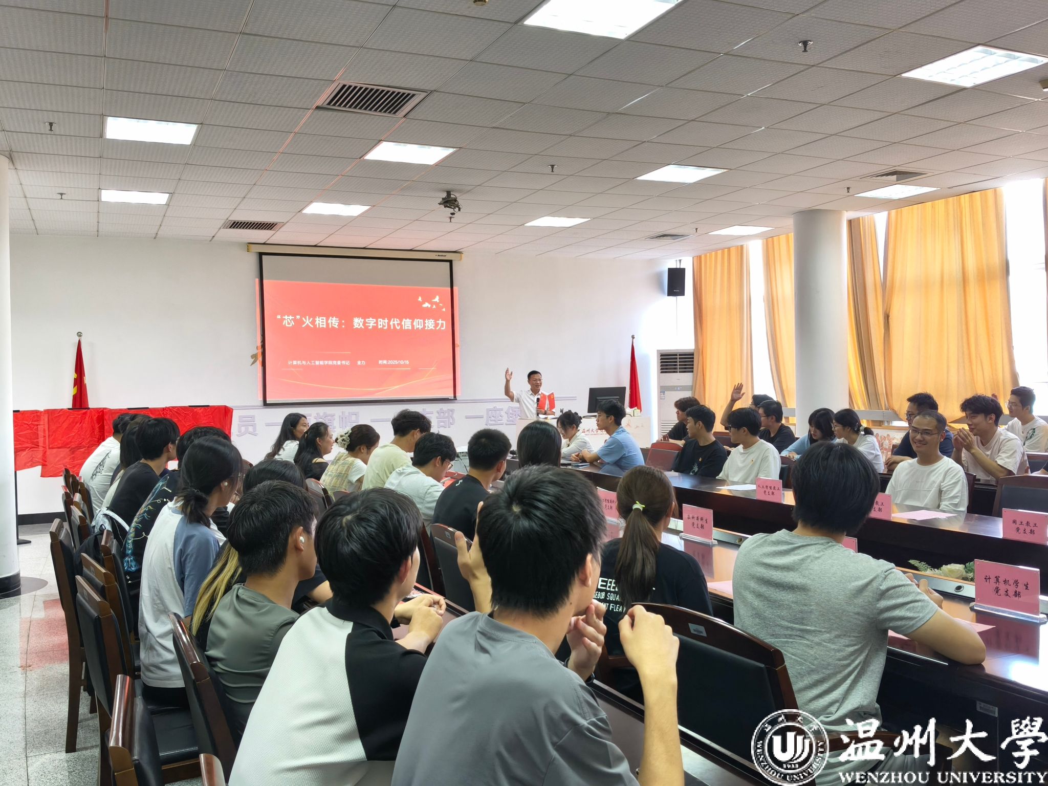 学院党委书记全力以《“芯”火传承与时代担当》为题讲授专题党课,从“芯”字的双重内涵切入,为师生党员带来一场思想盛宴。解码“芯”之内涵:以古代灯芯、蜡烛照明的生活场景为引,阐释传统“薪火”象征的精神接续与责任传承;再聚焦现代“芯片”,结合中美科技竞争中“卡脖子”问题,点明芯片作为人工智能、计算机领域核心组件的战略意义,强调科技自立自强是当代科技工作者与青年学子的必担之责。 融合“心”之智慧:党课中引入王阳明心学“知行合一”理念,指出当代党员需在理论学习与实践行动中保持一致;同时创新对比人类“碳基生命之心”与机器“硅基智能之心”,提出人工智能时代更需注重伦理传递,警惕将焦虑、功利化价值观传导给智能系统,守护科技发展的人文温度。明确“行”之方向:针对师生党员,书记提出三点具体要求:一要“脚踩大地”,扎实钻研专业知识,深耕人类文明精华,打牢成长根基;二要“头顶蓝天”,拓宽国际视野,拒绝短视功利,深入探索人文与科技融合的深层意义;三要“主动作为”,组建跨年级学习团队、参与学科读书会,在思想碰撞中提升创新能力,为应对人工智能爆发期的挑战做好准备。此外,“寻百名党员 访入党初心”专项活动同步启动。活动明确以资深党员、双带头人、青年榜样、优秀学生党员为采访对象,采用“线下+线上”结合形式开展专访,挖掘整理党员同志的信仰故事,形成专属“初心故事库”。