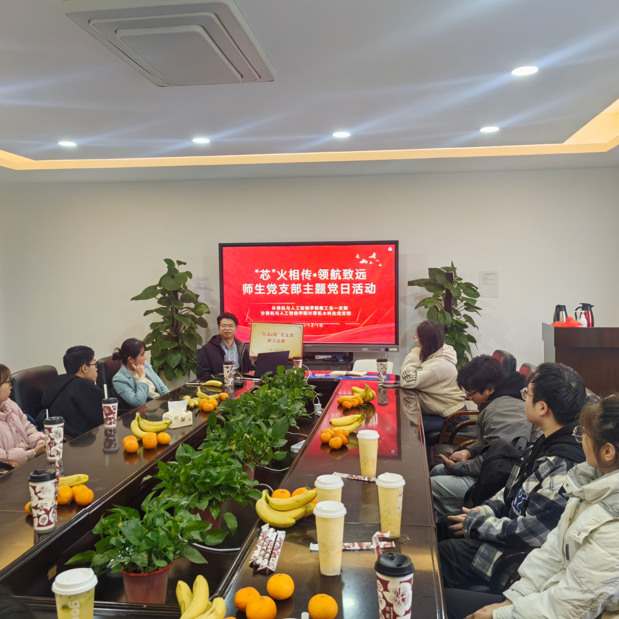 为进一步增进计算机系师生间的交流互动,营造便捷高效的学习生活环境,12月10日下午,艳母 计算机党支部与计算机本科生第一党支部在艳母 南5B318会议室,共同举办了“芯火相传·领航致远——大学生活我想说”主题沙龙活动。活动由计算机教工支部书记陈伟斌老师主持,支部纪检委员胡倩老师、组织委员康佳源老师、宣传委员胡孙贵老师出席,参加活动的还有25级、24级部分本科生,以及高年级党员代表刘彦熙、程如新、王晨曦、郑雯瀚、汪炜杰。