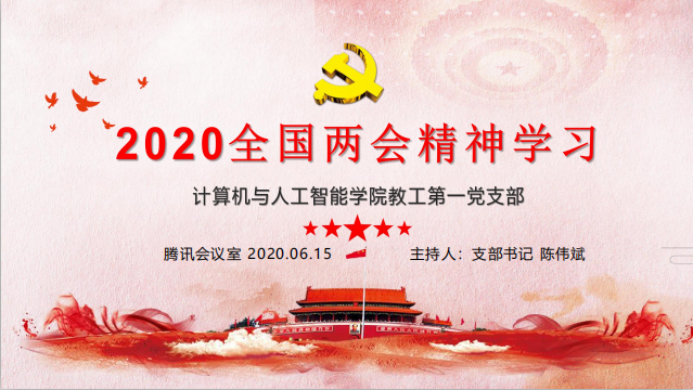 2020年6月15日,计算机与人工智能学院教工第一党支部召开2020全国两会精神专题学习会议,会议由支部书记陈伟斌老师主持。