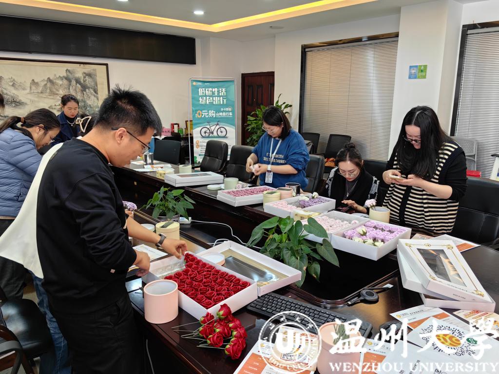 11月29日中午,计算机学院的教工们纷纷参加了这个有趣的活动。大家集中在学院的5B318会议室,桌上摆放着各种颜色的花材和工具。首先讲解和示范永生花的制作原理和技巧。接下来,教工们开始动手制作永生花。期间充满了欢声笑语和创意的火花。大家互相交流经验,分享技巧,共同打造出一朵朵精美的永生花。