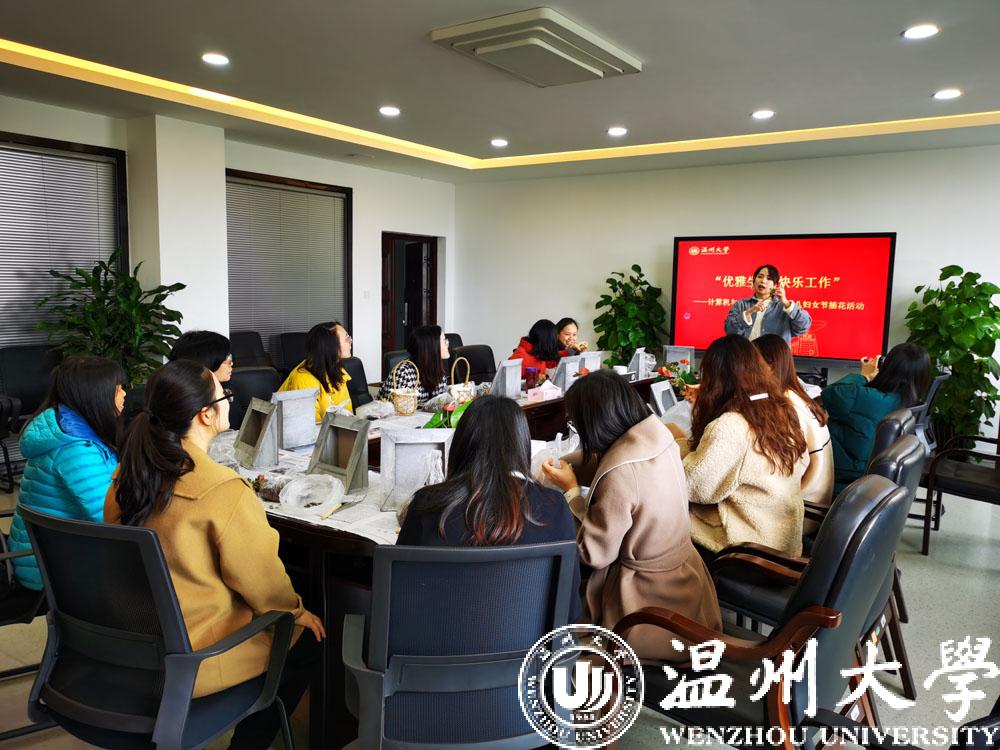 为庆祝第111个国际妇女节,丰富学院女教工的精神文化生活, 3月8日上午十点,学院工会在318会议室举办了“三八”妇女节插花活动。