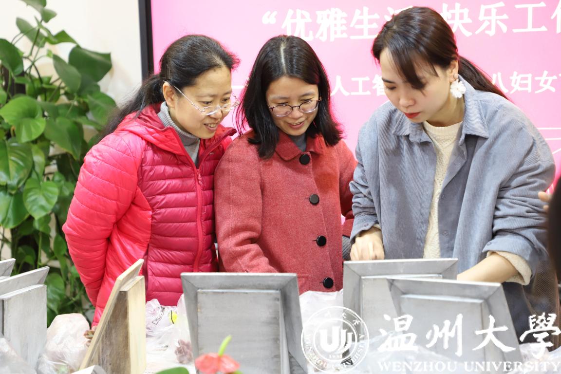 本次活动特别邀请到了温州市瓯花韵插花艺术研究所副理事长余老师给大家讲授多肉花艺及插花技巧,并在现场做了生动的演示。在花艺师的讲解和指导下,女教工兴致盎然地练习插花技艺,对各种多肉进行色彩搭配,细致地置入容器钟,一份份造型各异的多肉花艺作品精彩展现出来。现场充满了春天的气息。