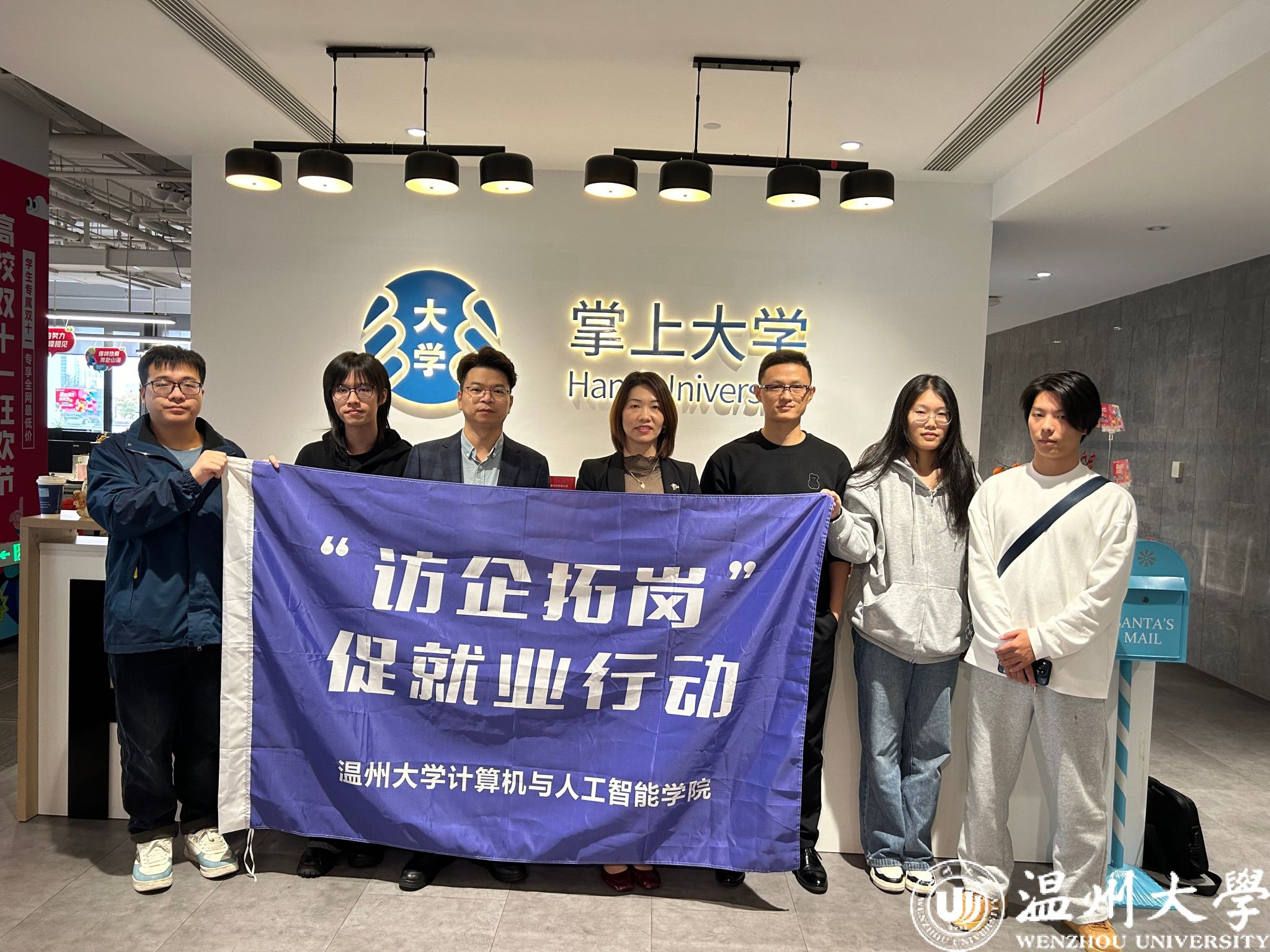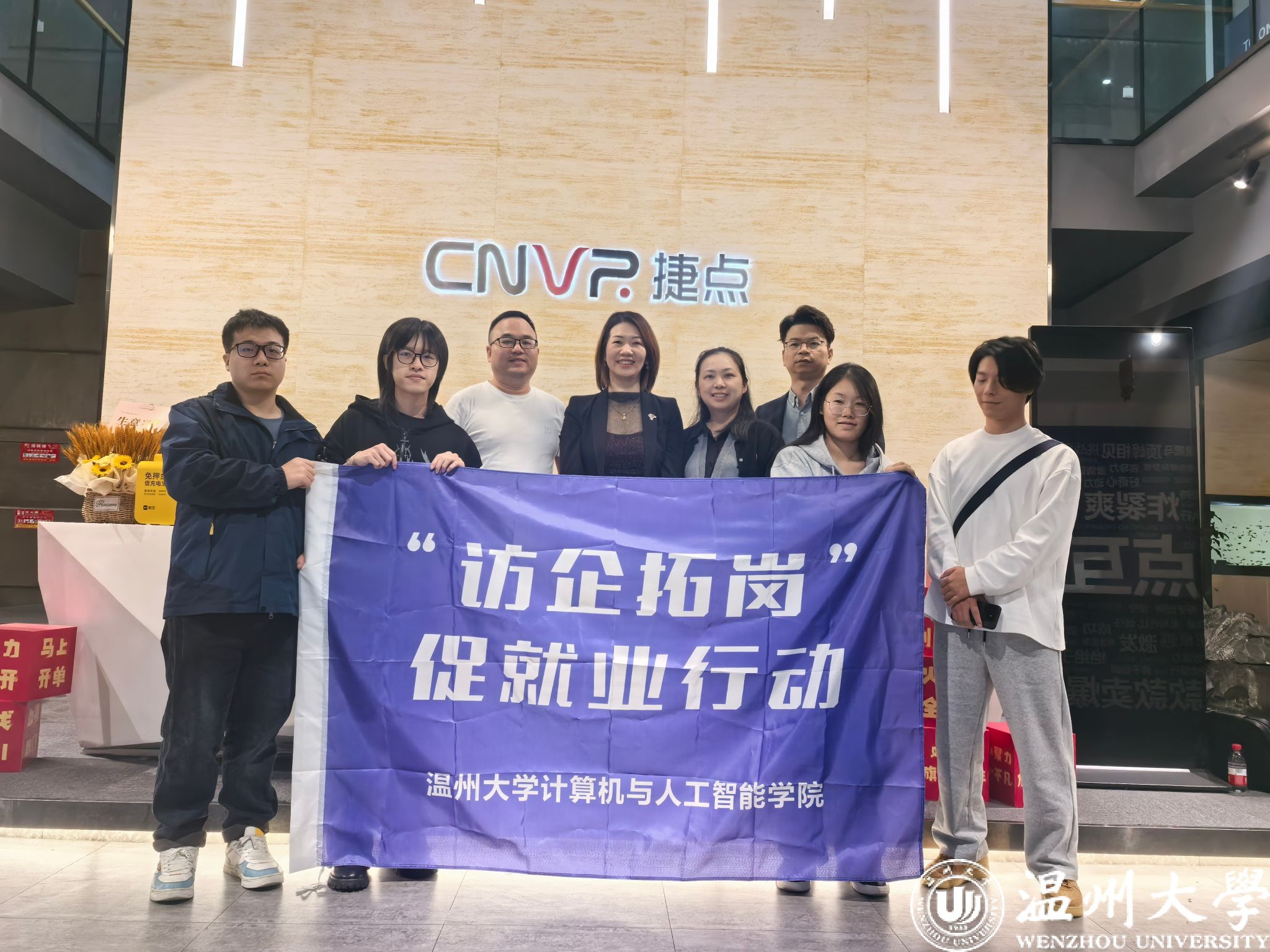 11月17日,艳母 计算机学院为积极贯彻教育部及学校“访企拓岗”专项行动要求,推动产教融合、科教融汇,进一步拓宽毕业生就业渠道,由学院党委副书记彭小媚带队,计算机系主任陈伟斌、学工办主任叶洁琼及学生代表等一行前往杭州走访调研了校友企业——掌上大学和杭州捷点网络科技有限公司。此次走访旨在深入了解企业需求,挖掘校企合作潜力,为毕业生搭建更广阔的就业平台。