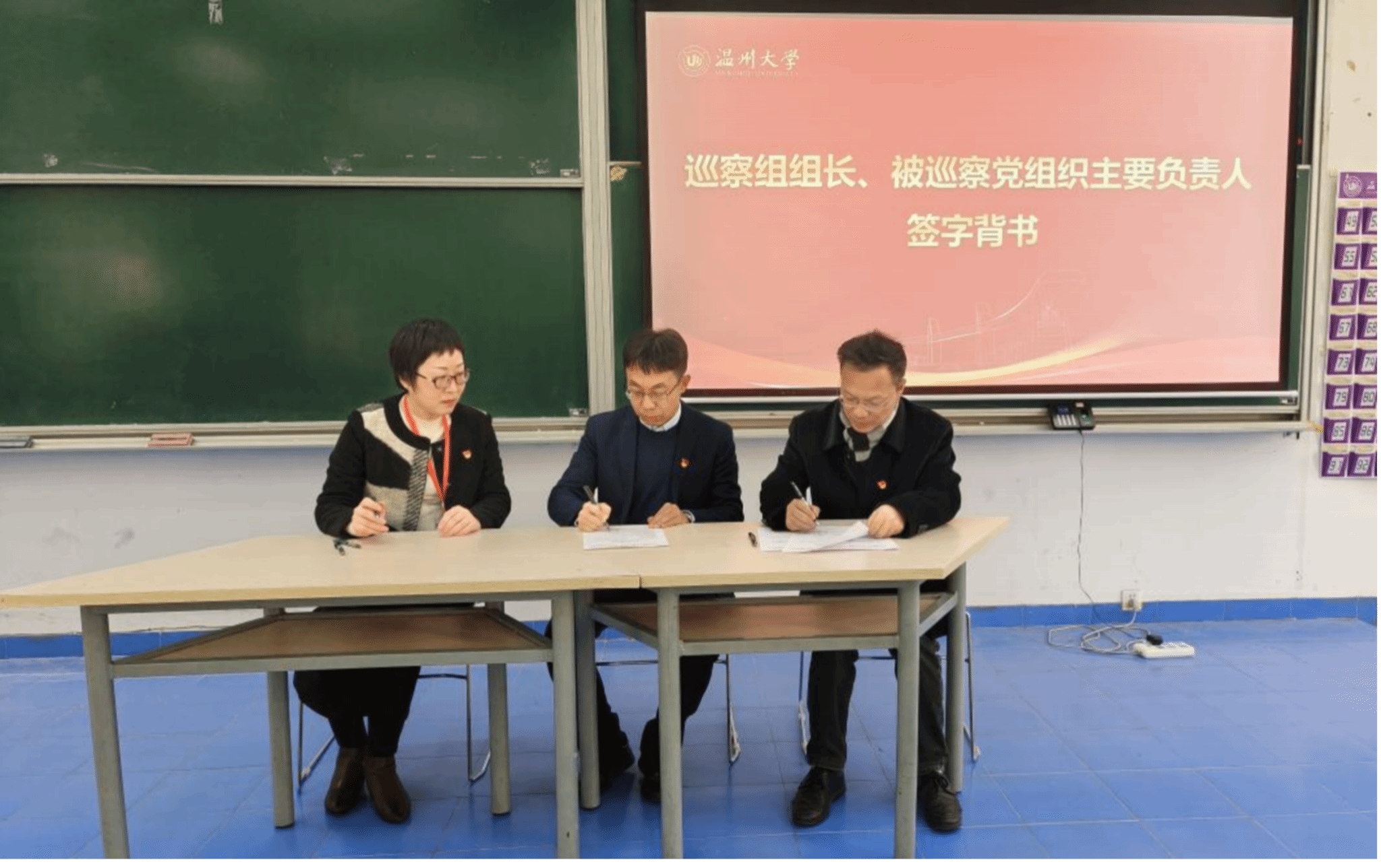 最后,全力书记、陈慧灵院长与学校巡察组代表履行了签字背书程序。
