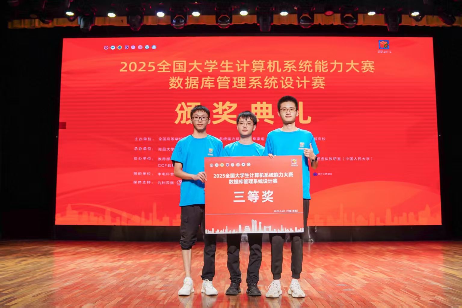 近日,2025年全国大学生计算机系统能力大赛——数据库管理系统设计赛决赛圆满落幕。温州大学计算机与人工智能学院21级王雪峰、23级徐王晶、林灏3位学生组成的“边看书边吃饭”团队代表学校首次参赛,成功入围决赛并斩获全国三等奖,实现了温州大学在该项高水平学科竞赛中的历史性突破。该团队指导教师黄长城教授荣获大赛“优秀指导教师”称号。