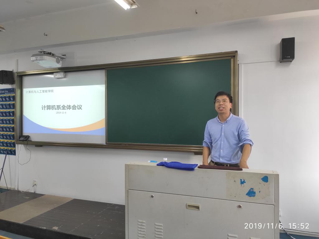 11月6日下午3点,计算机系在5B303室召开全系教工大会。全系近30人参加了会议,会议由系支部书记陈伟斌主持。