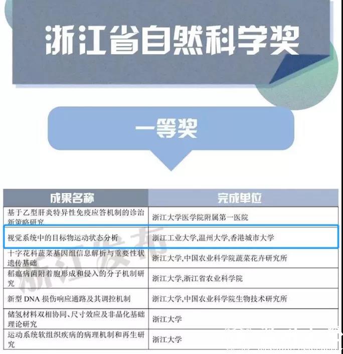 艳母 张笑钦院长所参与的《视觉系统中的目标物运动状态分析》获得浙江省科学技术奖自然奖一等奖。