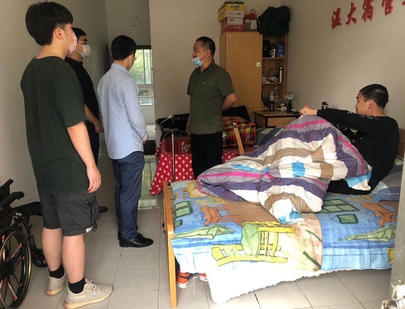 走访慰问过程中,学院领导与同学们亲切交流,主动关心同学们学习、工作、生活各方面情况,认真倾听学生心声并解答学生困惑,并为同学们分发了防疫物资。随后,学院领导叮嘱同学们疫情期间要遵守学校各项相关规定,不可放松警惕和防范意识,充分利用好学院发放给每个寝室的疫情防控物资。在校期间务必做好个人安全防护,佩戴口罩、规范洗手,每日按时进行身体健康状况上报,做到“早发现、早报告、早隔离”,同时强调做好宿舍环境卫生,勤开窗多通风 。