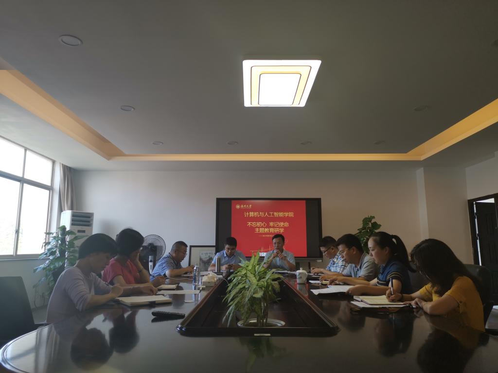 为深入学习贯彻习近平总书记在“不忘初心、牢记使命”主题教育会议上的重要讲话精神,全面贯彻落实校“不忘初心、牢记使命”主题教育工作部署,9月19日下午三点,计算机与人工智能学院“不忘初心、牢记使命”主题教育学习部署会在南校区5B三楼会议室召开。会议由学院党委书记全力主持,学院领导班子及各科室主任参加了会议。