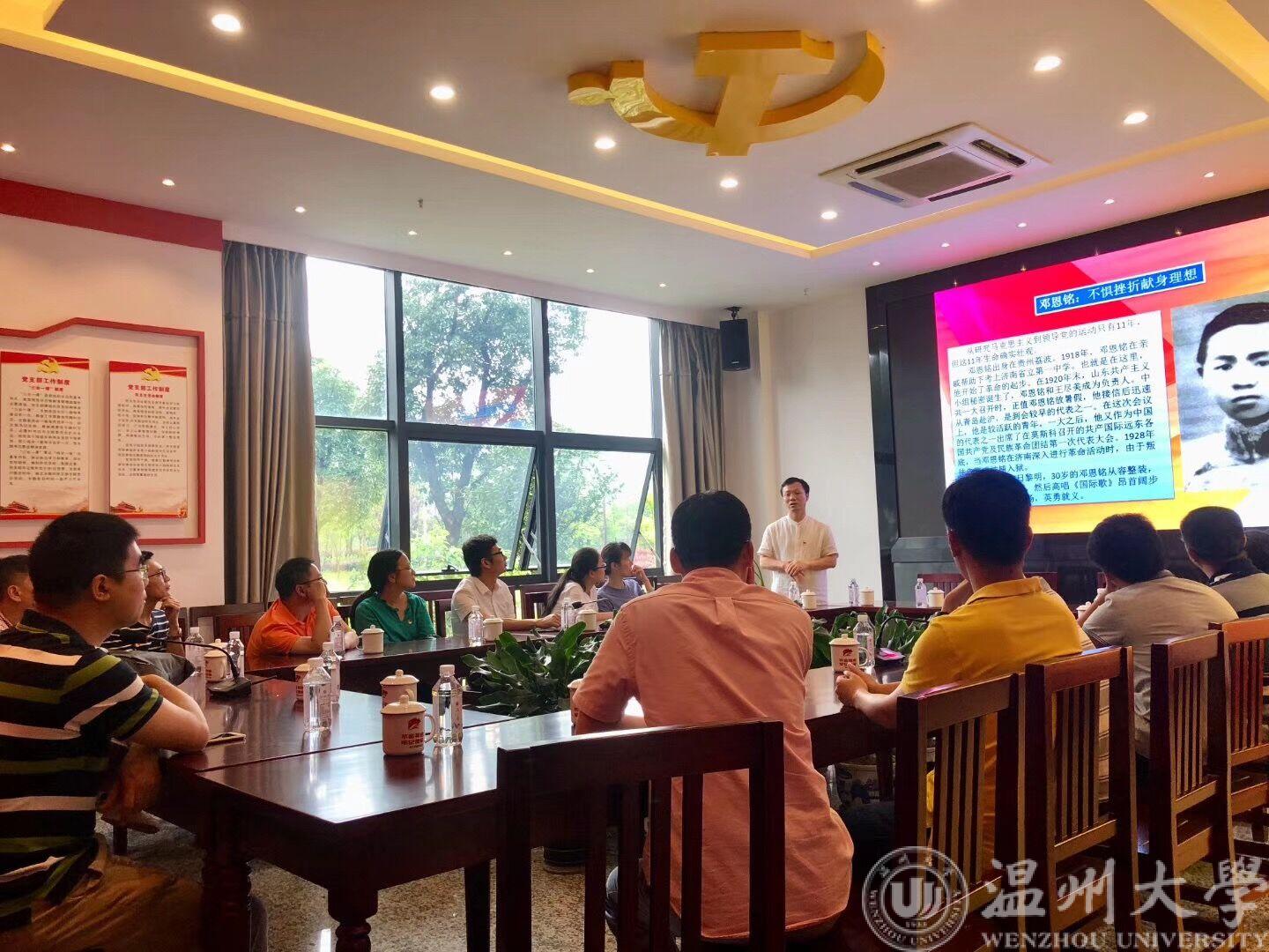 在党刚刚度过98岁生日之际,根据《关于以“不忘初心跟党走,牢记使命勇担当”为主题开展“红七月·服务月”活动的通知》和工作安排,温州大学计算机与人工智能学院全体教工党员于7月6日前往瓯江学院“瓯江红”党员之家开展主题党日活动。