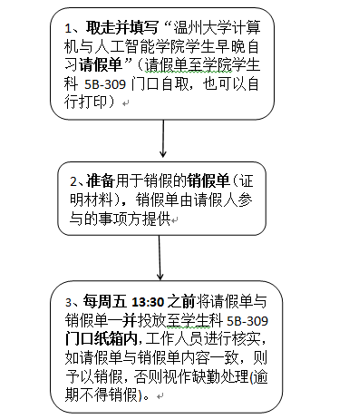 2.各同学应自觉参加早晚自习,不得迟到、早退,因故不能参加者,须和班级负责考勤同学请假并提供相关证明,凡未请假者或无故超假者,均按旷课处理;