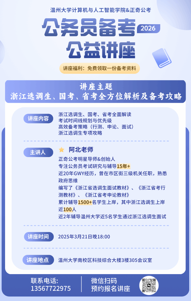 “近2年辅导温州大学近5名学生通过浙江选调生面试”