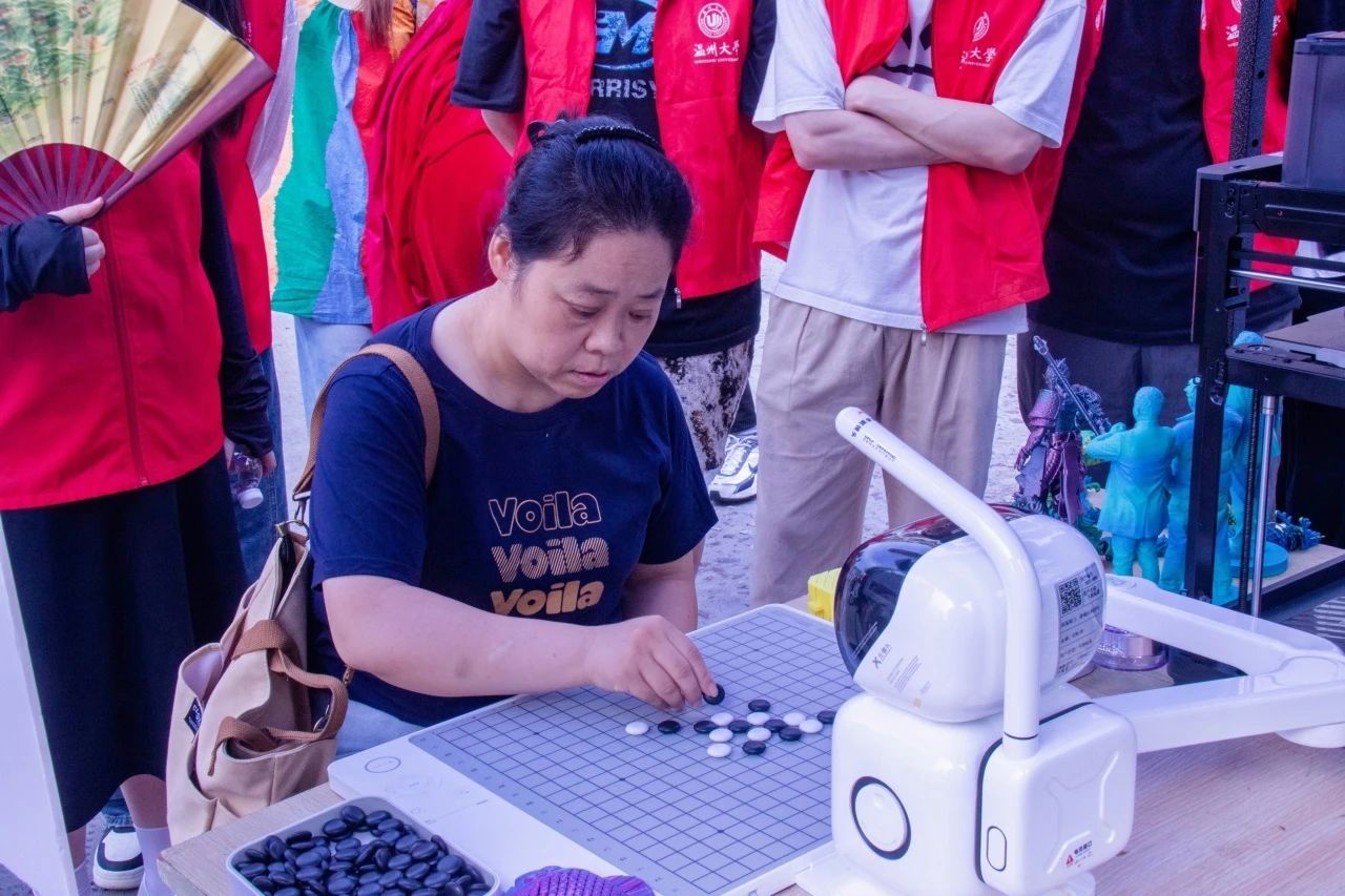 与家长一起跟“元萝卜”机器人下棋
