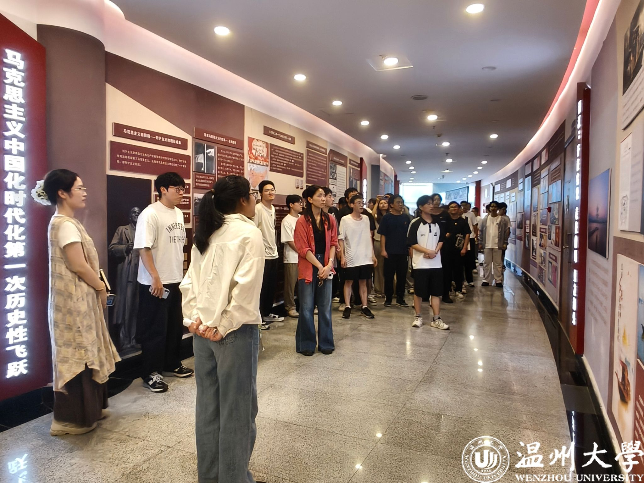 活动伊始,全体师生党员走进马克思主义理论基地,开启沉浸式学习之旅。在专业讲解员的引导下,大家沿着史料文献铺就的“时光长廊”缓缓前行,从马克思主义经典著作早期译本,到记录中国共产党百年奋斗历程的珍贵档案,再到通过场景复原技术重现的革命先辈学习研讨场景,每一处展陈都承载着厚重的思想力量。党员们驻足凝视、轻声交流,系统回顾马克思主义中国化的历史脉络与理论成果,深刻感悟真理从理论走向实践的伟大跨越,为后续开展党建与专业学习筑牢坚实思想根基。