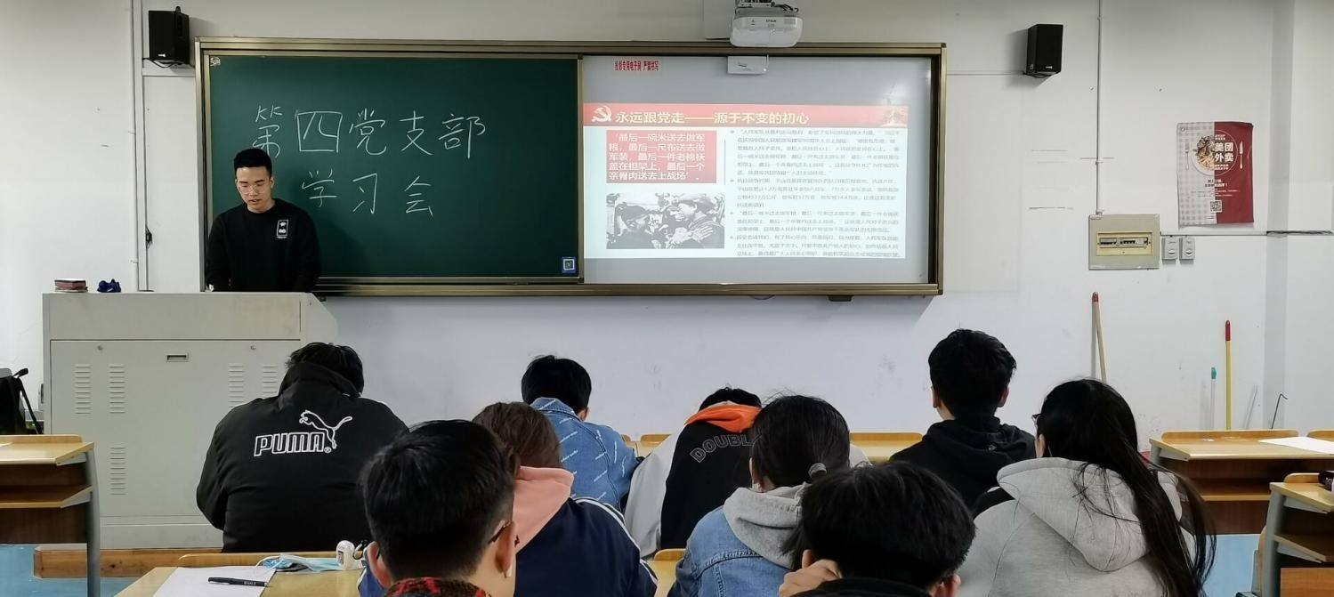 为了深入学习党的十九大精神,了解党的历史,不断提高党员党性修养,计算机与人工智能学院本科生第四党支部于2021年11月13日下午13时30分在5A202召开了主题为”永远跟党走”的学习会。本次学习会由18大数据1班黄星豪同志主持,来自支部的21名党员参与。