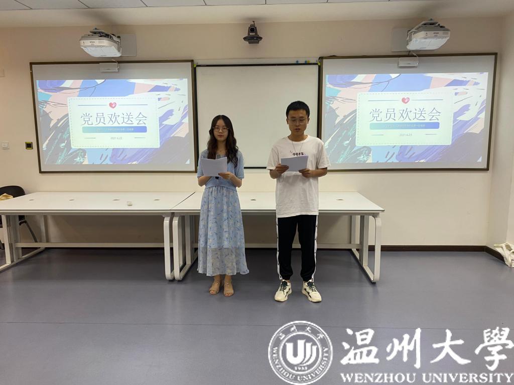 2021年6月23日晚,计算机与人工智能学院本科生第一党支部于5B-206顺利举办了2017级毕业生党员的欢送会。此次欢送会由计算机学院2018级本科生第一党支部全体党员组织开展,来自18计本2班的贾杰、冯煜瑶同学担任此次欢送会的主持人。学院党委副书记陈志勇老师、学工办主任叶洁琼老师,毕业生党员代表出席了此次欢送会。