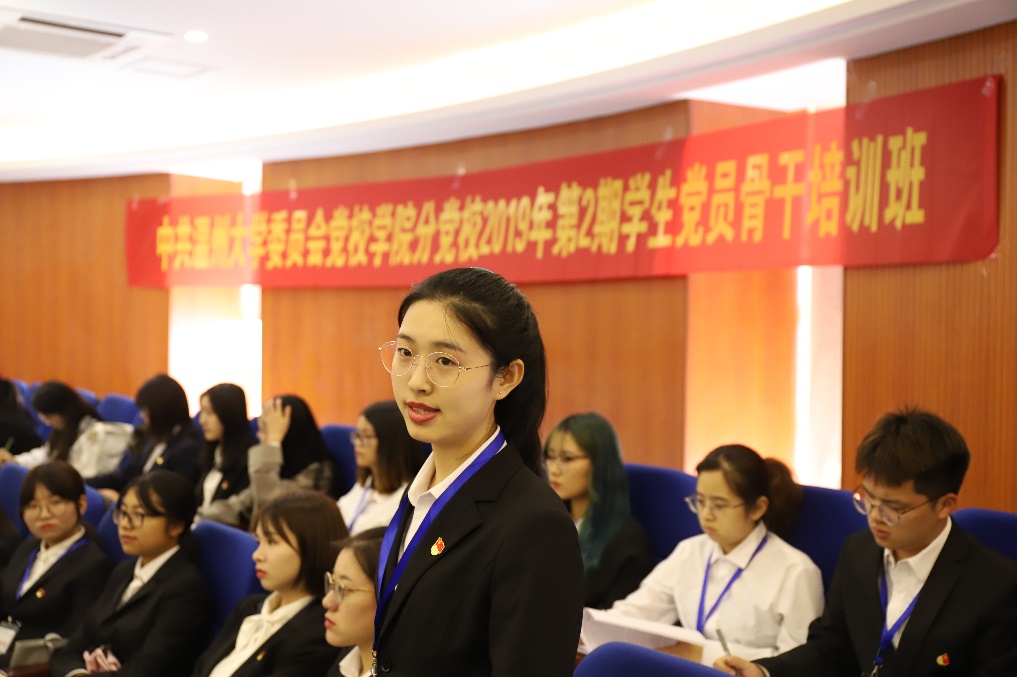 为加强和改进学生党员教育工作,调动学生党员学习积极性,2019年10月23日下午,中共温州大学委员会党校学院分党校2019年第2期学生党员骨干联合培训班第一课于机电楼3B-309举行,马克思主义学院郑旭敏老师为学员们生动讲授如何上好一堂微党课。
